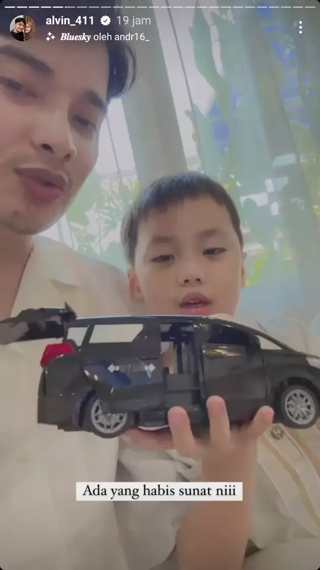 Usai sunat, Yusuf pun mendapat kunjungan dari ayah kandungnya nih. Alvin Faiz datang menjenguk Yusuf yang asyik main mobil-mobilan.