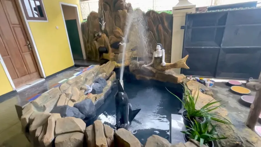 Nggak cukup satu, terdapat kolam ikan lagi di halaman belakang rumah ini. Sultan banget ya!