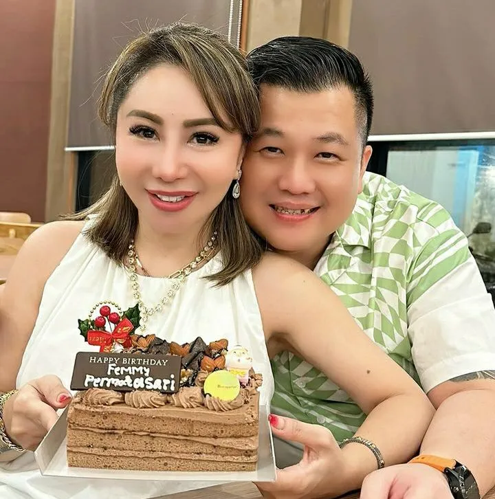 Suami Femmy pun memberikan kue ulang tahun spesial lagi nih untuk ulang tahun sang istri. Pasangan ini begitu romantis dan harmonis sekaligus!