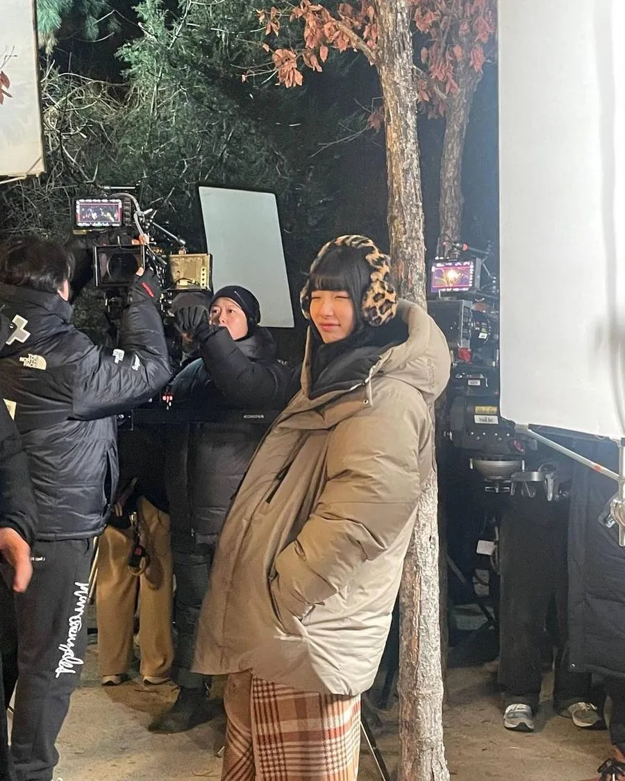 Cuaca dingin nggak menghalangi aktris Korea satu ini untuk lanjut syuting! Bae Suzy kelihatan gemas banget nggak sih mengenakan jaket tebalnya?