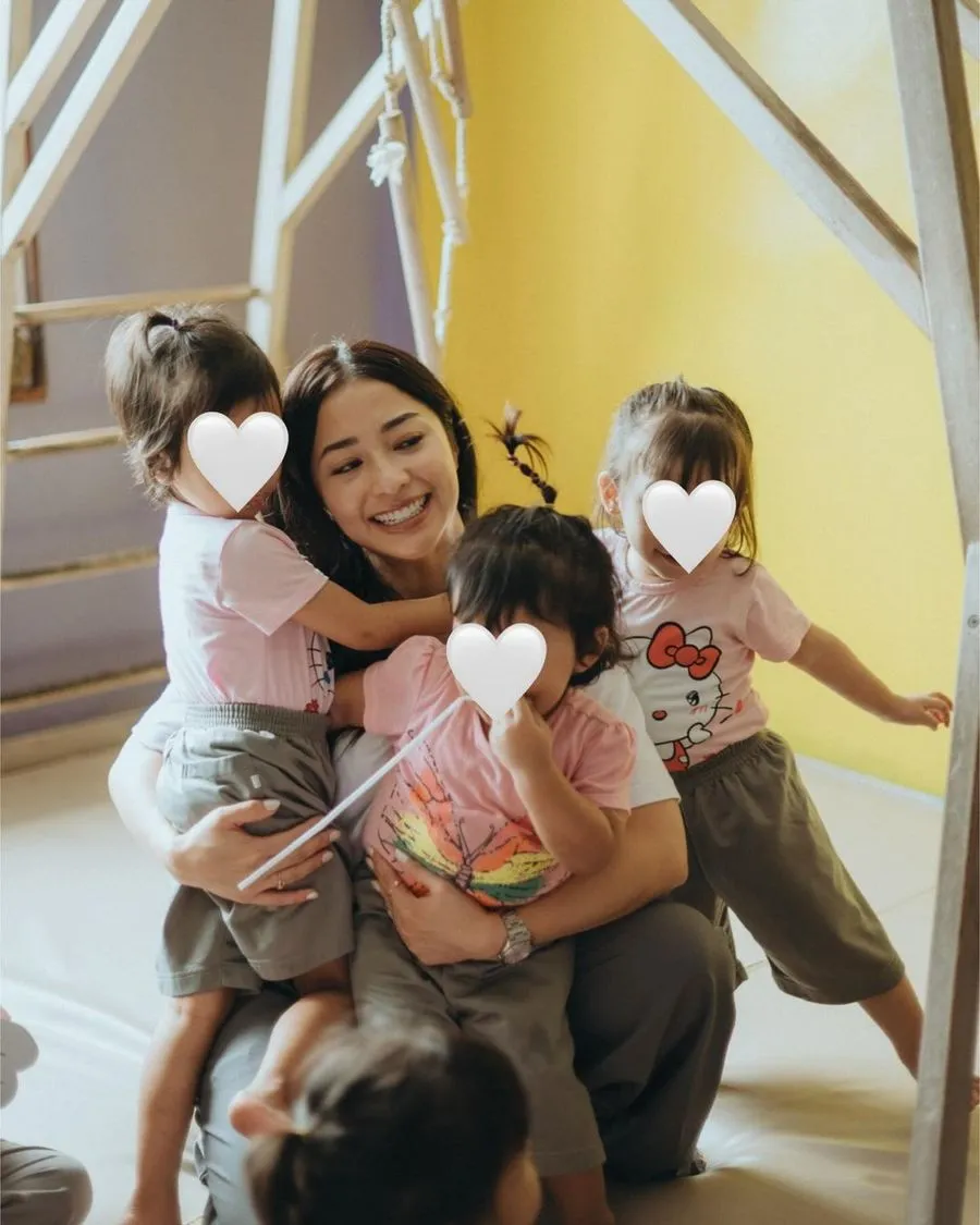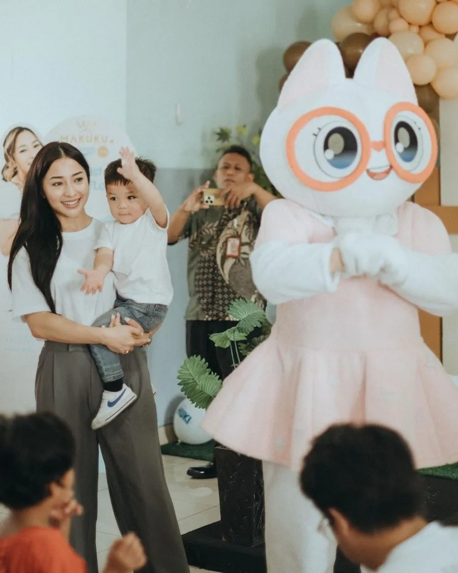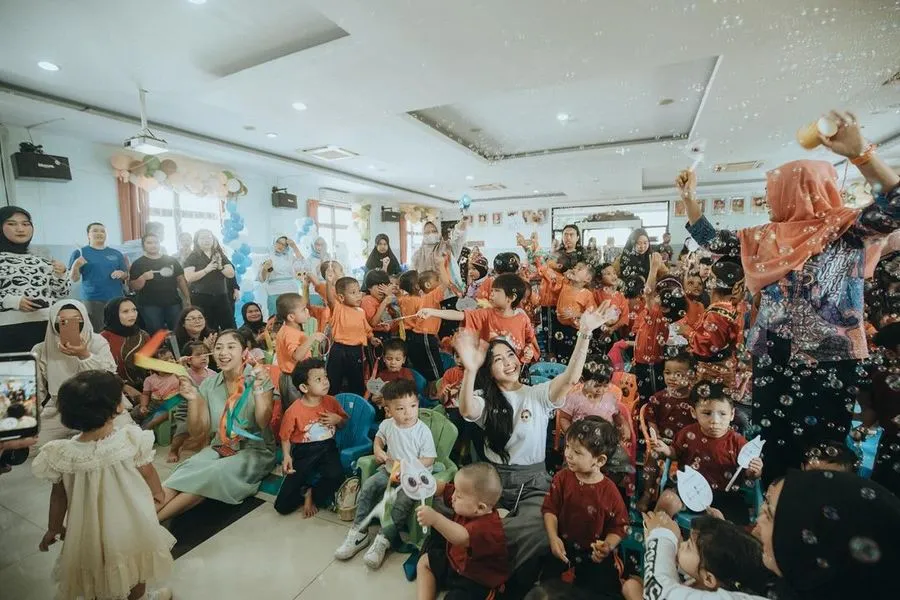 Keceriaan dan kehangatan begitu terasa di momen tersebut. Nikita Willy bahkan tak segan berinteraksi bahkan memangku hingga menggendong anak-anak panti asuhan itu.