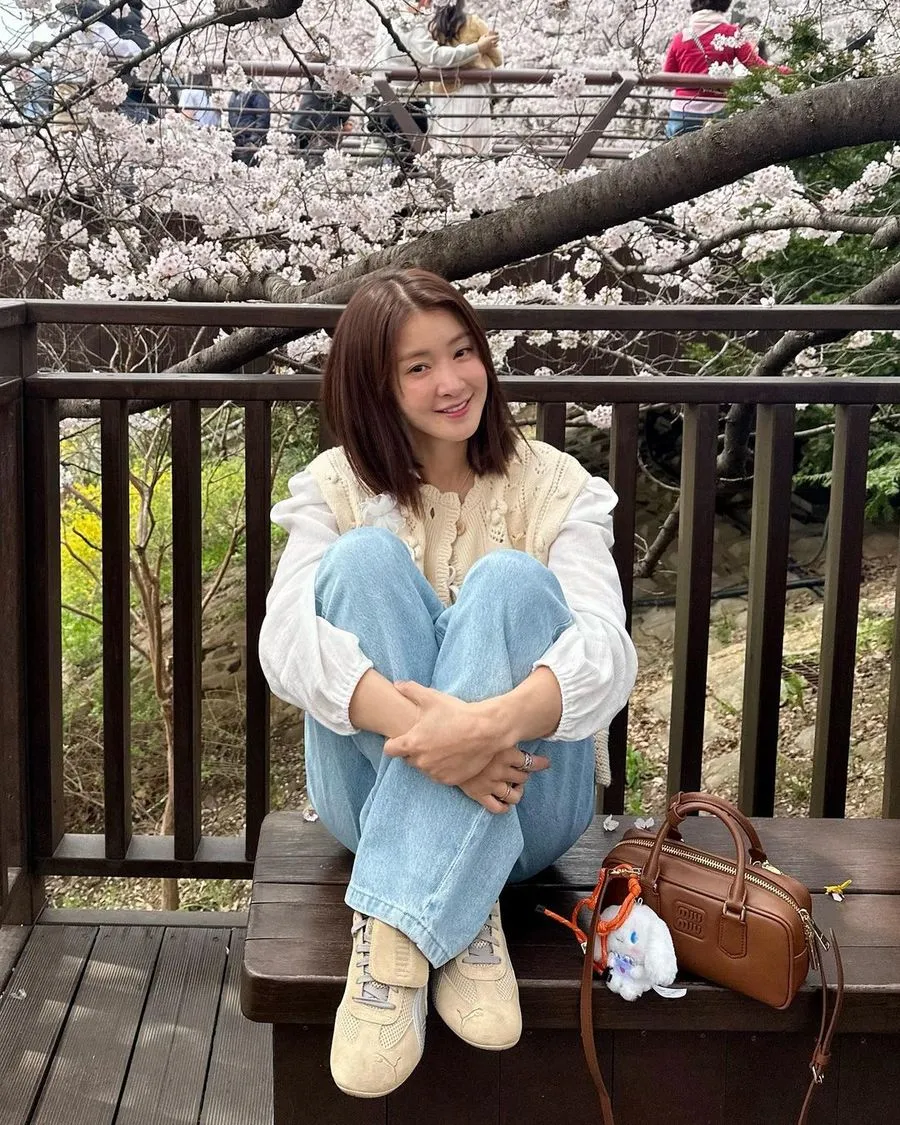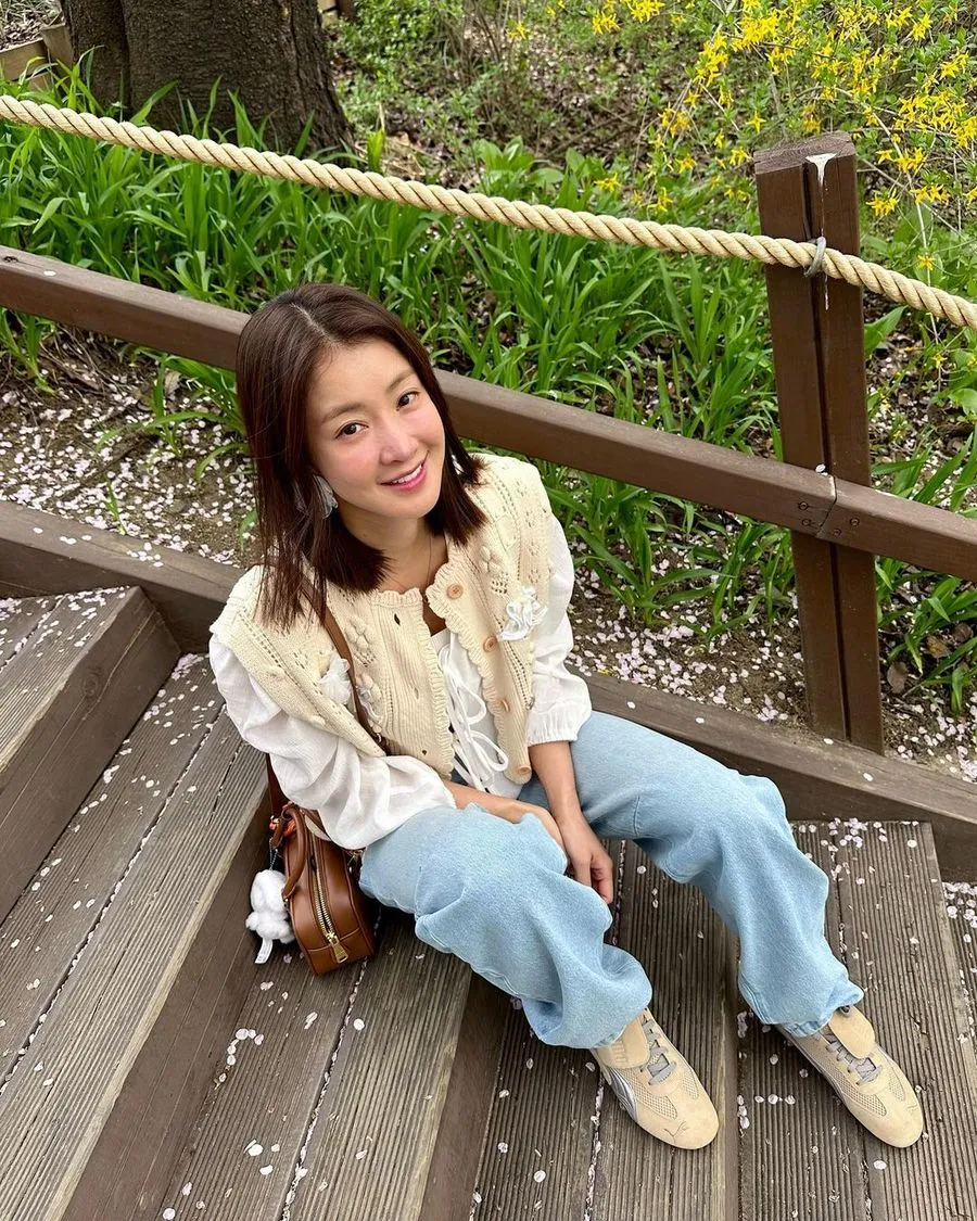Dalam kesempatan ini, Lee Si Young berdandan casual dengan blus putih yang dipadukan dengan celana jeans dan vest rajut. Vibes-nya musim semi banget!