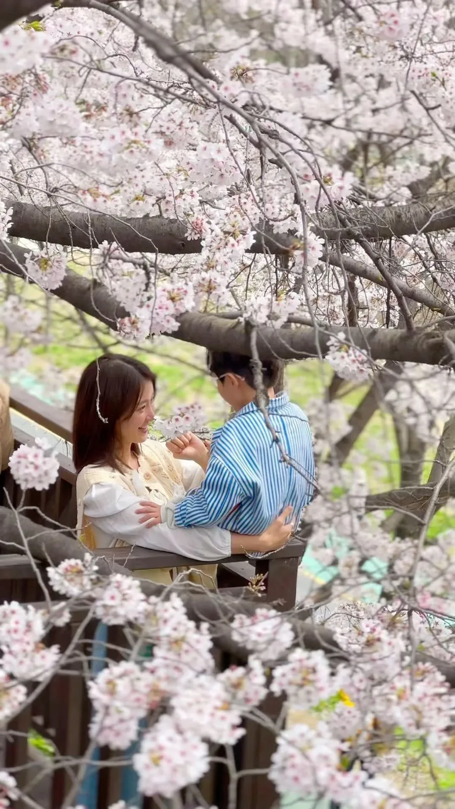 Interaksi manis antara Lee Si Young dengan Jung Yoon pun tertangkap kamera, di mana keduanya asyik bermain bersama di bawah pohon sakura.