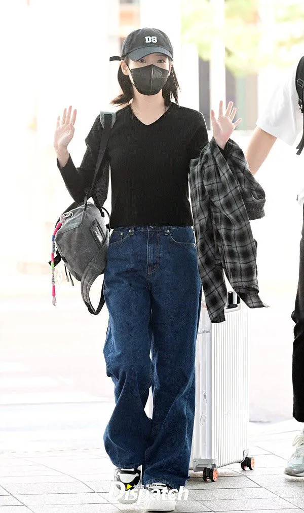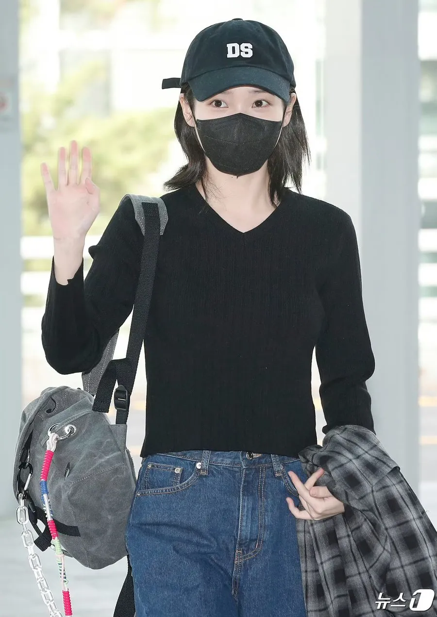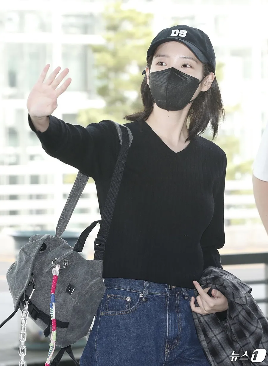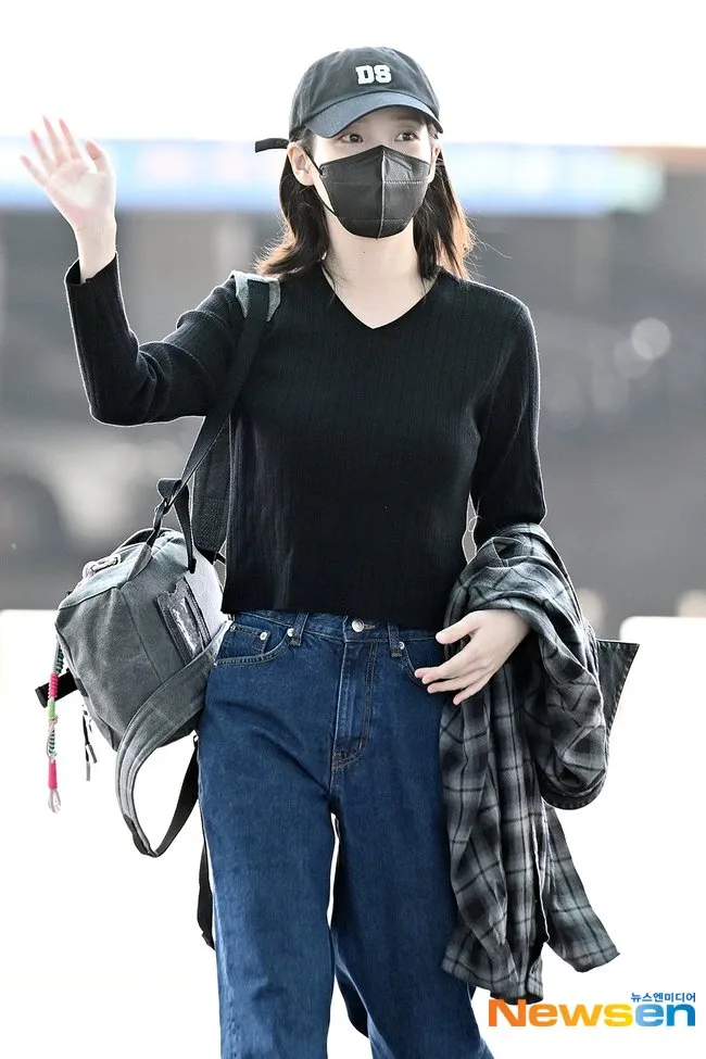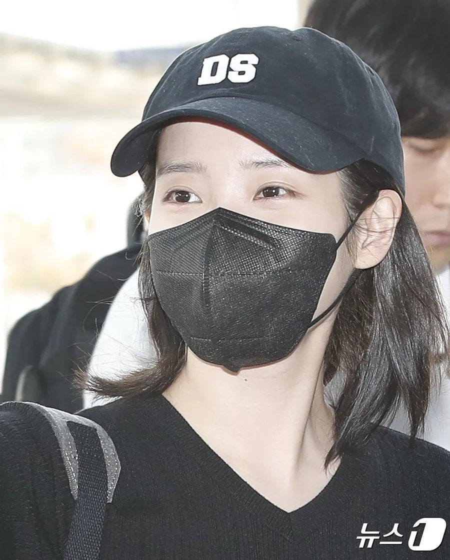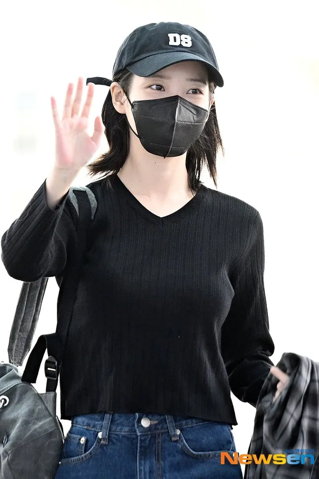 Untuk melengkapi airport fashion-nya, IU juga mengenakan pakai topi dan masker hitam yang matching dengan OOTD-nya secara keseluruhan.
