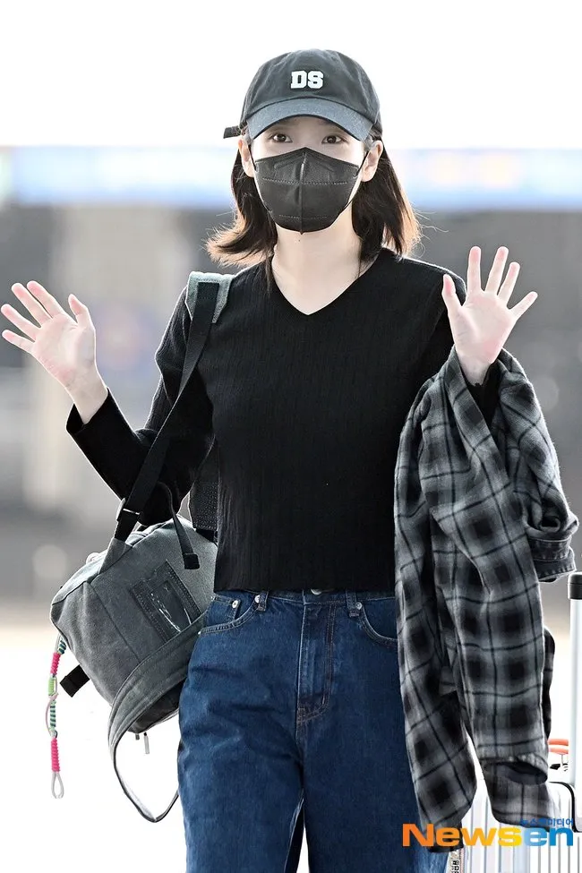 Di momen keberangkatannya kali ini, IU tampak mengenakan OOTD casual yang pastinya nyaman untuk perjalanan panjang di pesawat.