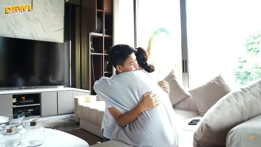 Depe nampak tak bisa menahan haru ketika memeluk Gegeb. Air matanya tumpah begitu memeluk anak yang diasuhnya sejak belasan tahun silam itu.
