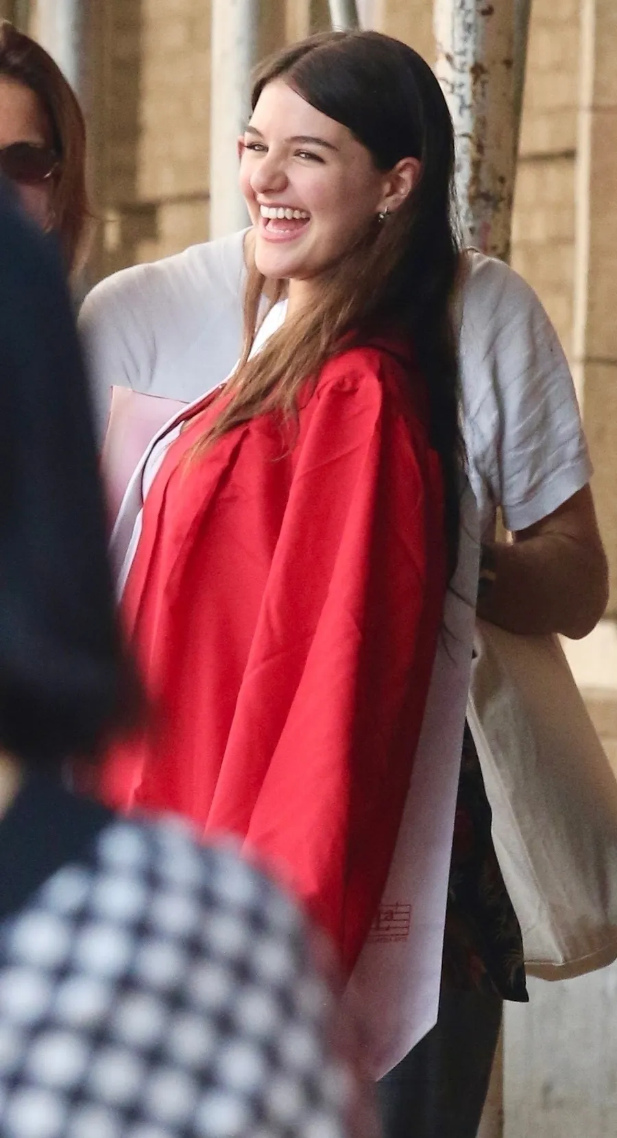 Bergabung dengan teman-temannya yang juga diwisuda, Suri Cruise terlihat begitu bahagia dan memamerkan senyum lebarnya.