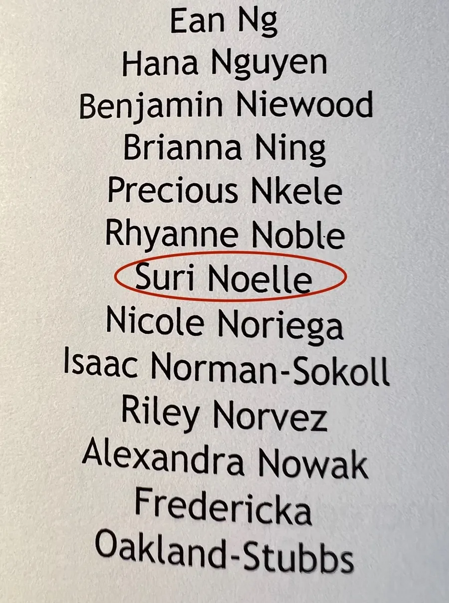 Selain penampilannya, Suri juga berhasil menjadi bahan perbincangan karena menghapus nama belakang ayahnya. Tak lagi pakai nama Cruise, ia memilih Noelle dari nama tengah sang ibunda.