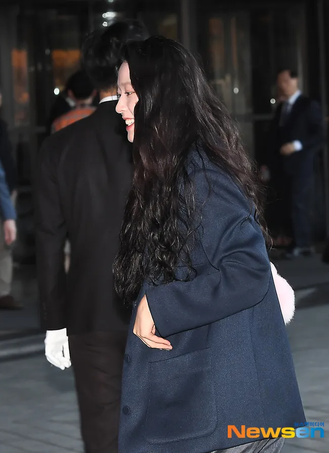 Seolhyun eks AOA tetap menawan meski tampil simple mengenakan blazer warna gelap dengan rambut panjang yang diurai.
