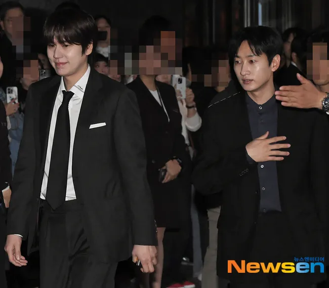 Dua member Super Junior, Kyuhyun dan Eunhyuk, terlihat kompak datang bersama di acara bertabur bintang ini.