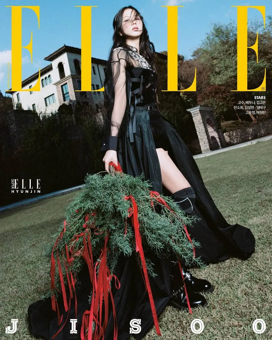 Menjelang akhir tahun, pemotretan Jisoo memanfaatkan potongan pohon cemara berhias pita merah sebagai property yang memberi nuansa Hari Natal.