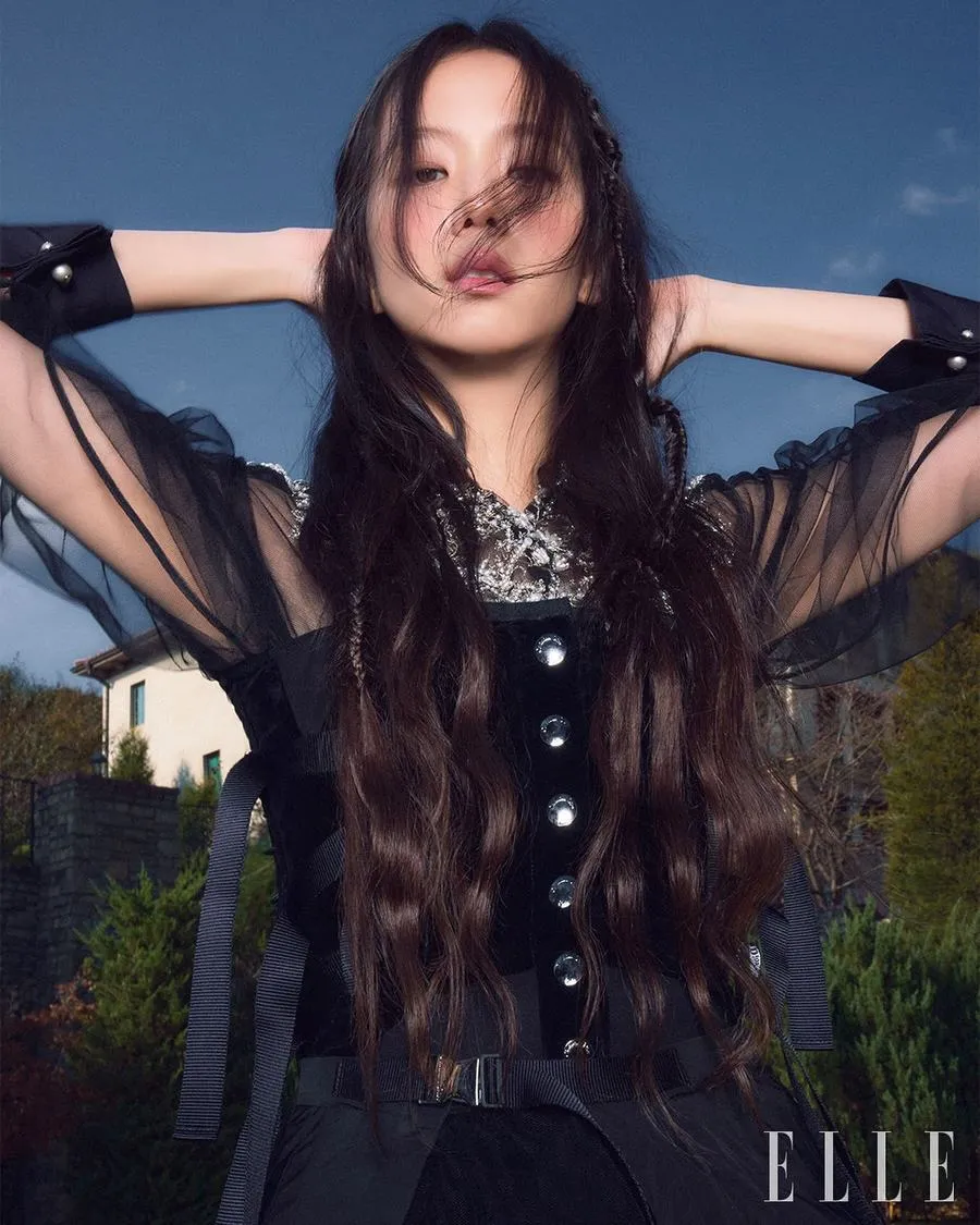 Dalam konsep satu ini, pesona Jisoo yang mengenakan gaun hitam berbeda tetap terpancar paripurna meski sebagian wajahnya tertutup rambut.
