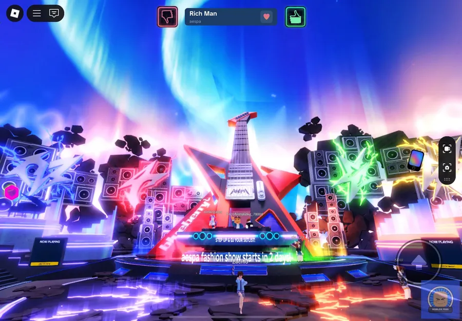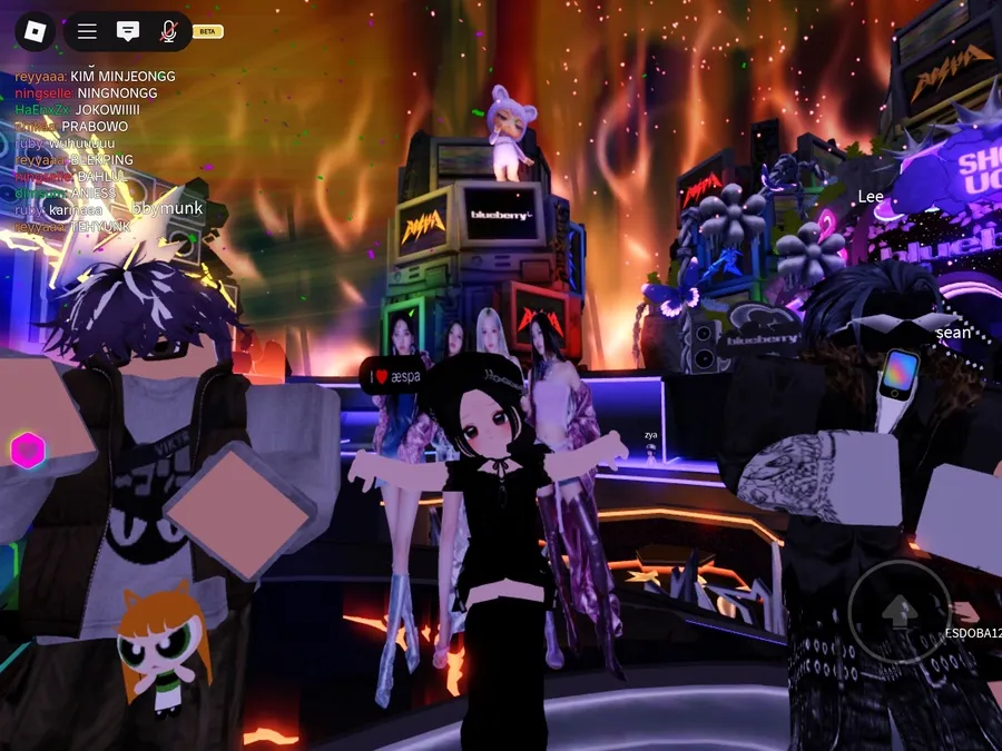 Meet and greet aespa di Roblox telah digelar secara virtual pada tanggal 16 September 2025. Semua pemain tampak antusias bertemu aespa di game daring.