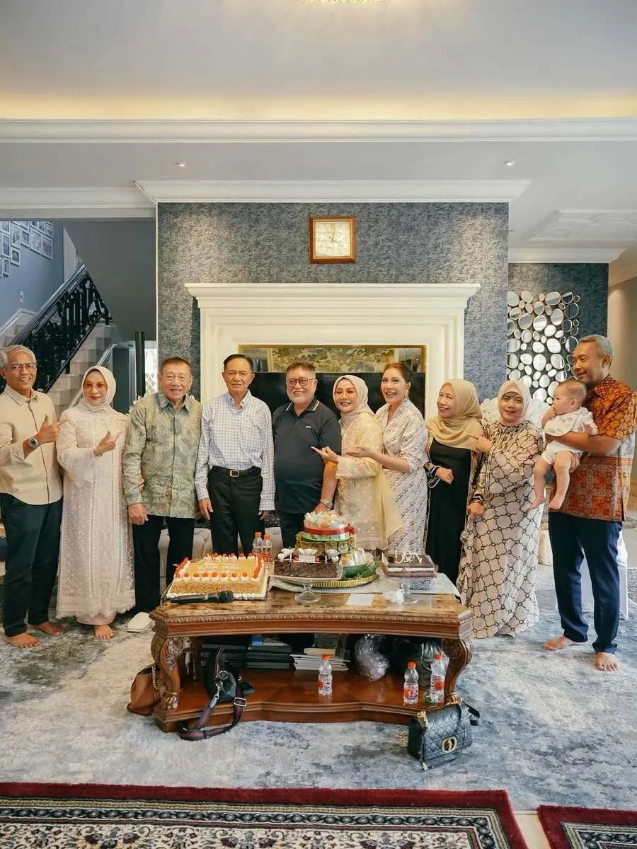 Terpantau Nikita Willy tak ketinggalan hadir. Ia mengajak serta suami dan kedua buah hatinya untuk merayakan ulang tahun kakek.