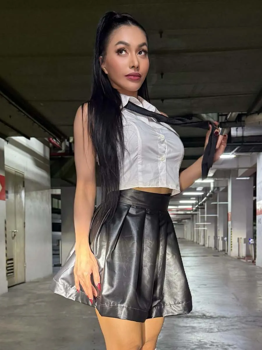 Menariknya lagi, gaya berbusananya pun kian bak remaja. Baru-baru ini, Denada tampil kenakan atasan tanpa lengan dipadu rok mini.