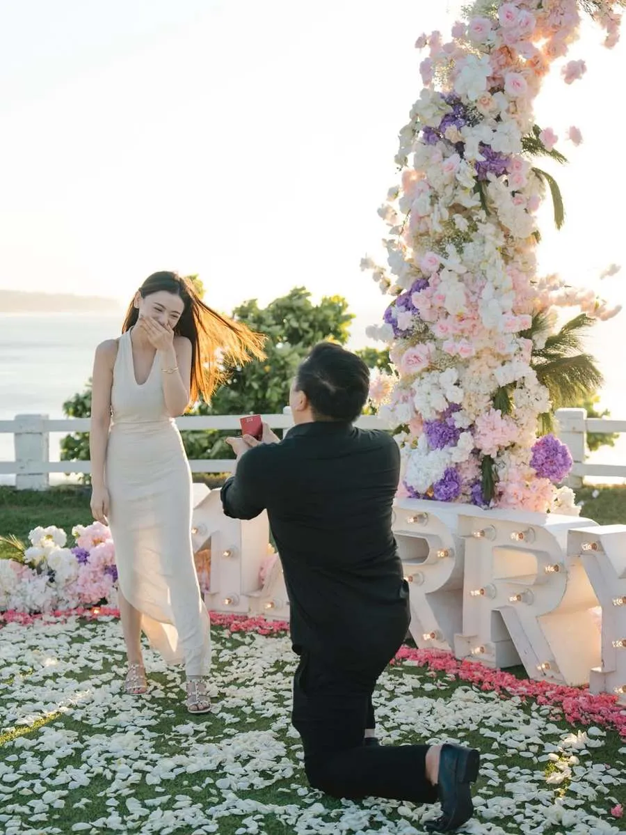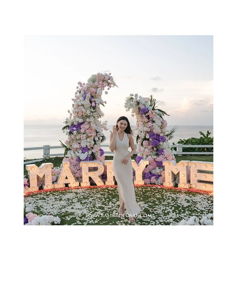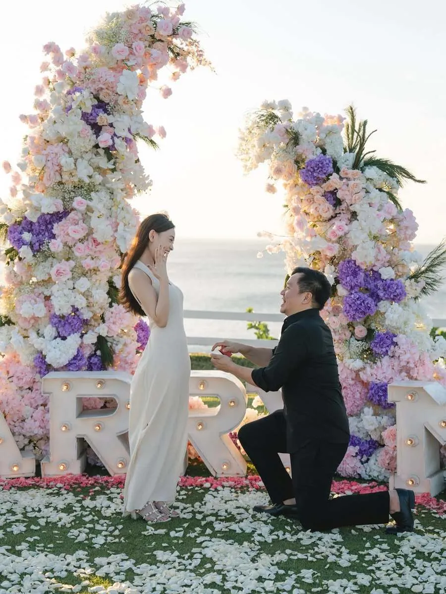 Momen manis ini terjadi di Bali pada 16 Oktober 2025, di mana Harris berlutut dan menyodorkan cincin sebagai tanda pengikat cinta mereka.