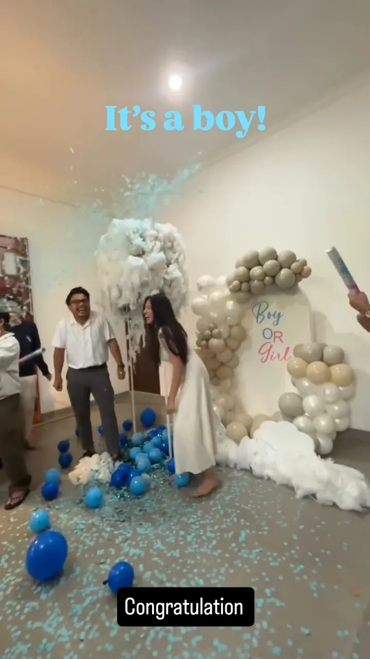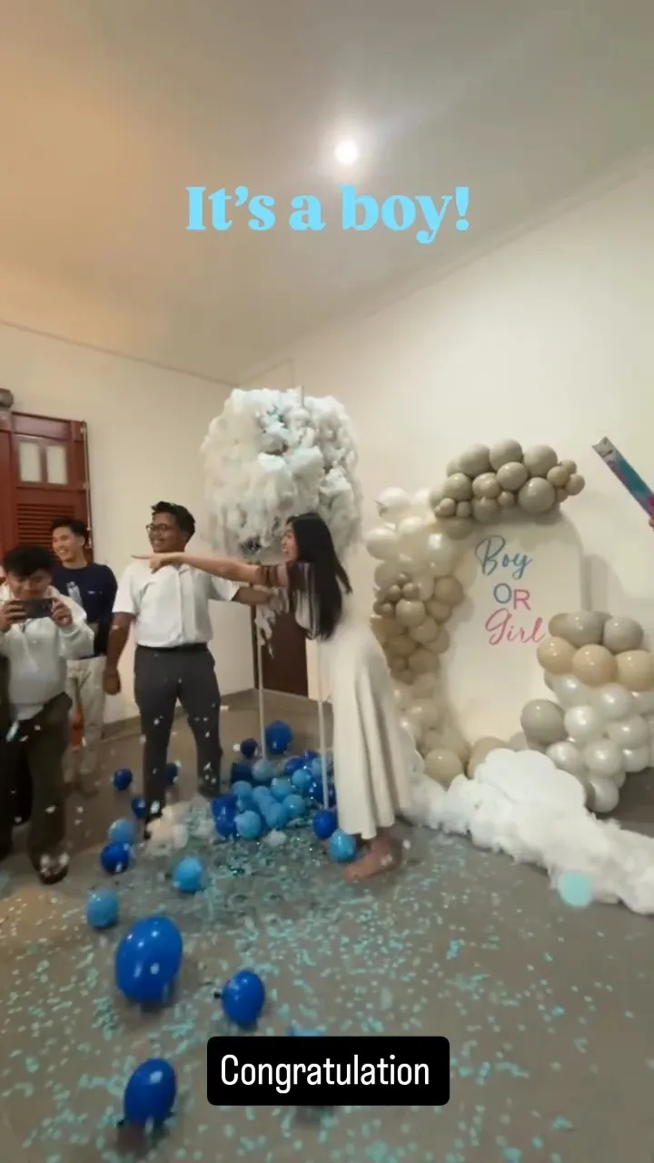 Setelah membuka kotak secara manual, akhirnya balon-balon biru keluar. Balon biru tersebut menandakan Ochi Rosdiana tengah mengandung bayi laki-laki.