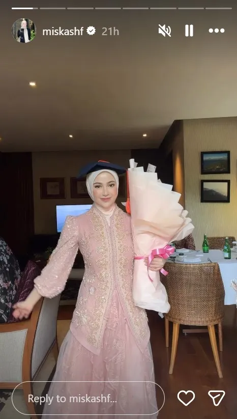 Suami dan keluarga tercinta, turut menemaninya di hari wisuda. Miskah pun tampil cantik di momen penting tersebut!
