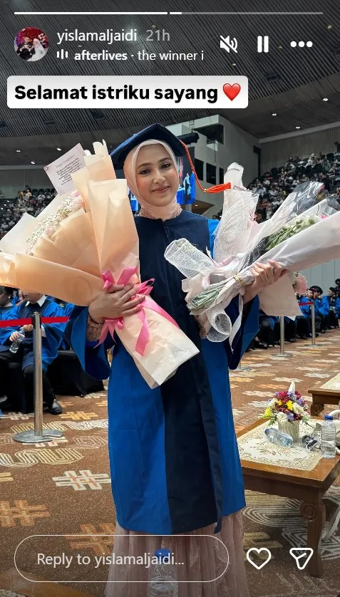"Selamat istriku sayang," tulis Yislam dalam Instagram story, hari Minggu (14/12).