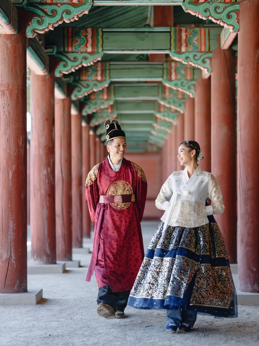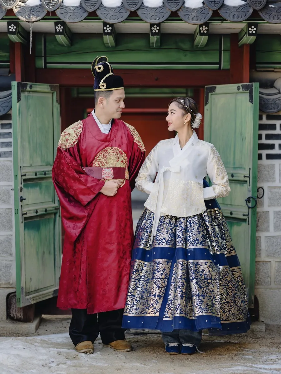 Glenca Chysara dan suaminya benar-benar tampil memesona dalam balutan hanbok. Keduanya tampil maksimal bak raja dan ratu drakor kolosal. Arsitektur klasik Korea di sekitar juga semakin menambah aura raja dan ratu di penampilan Glenca dan suaminya saat kenakan hanbok.