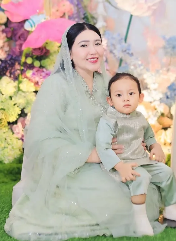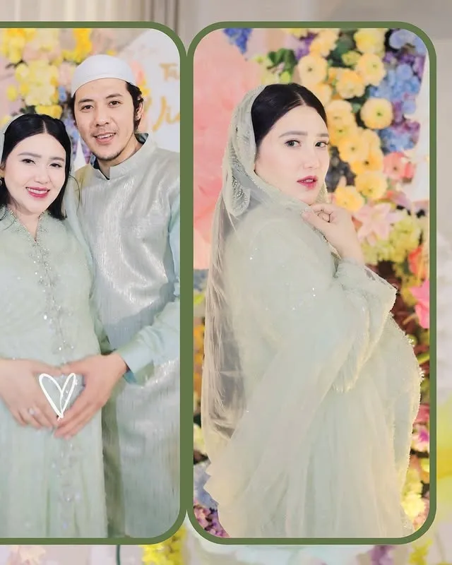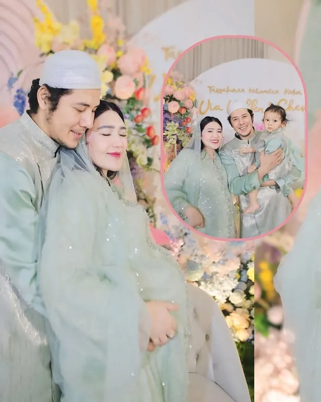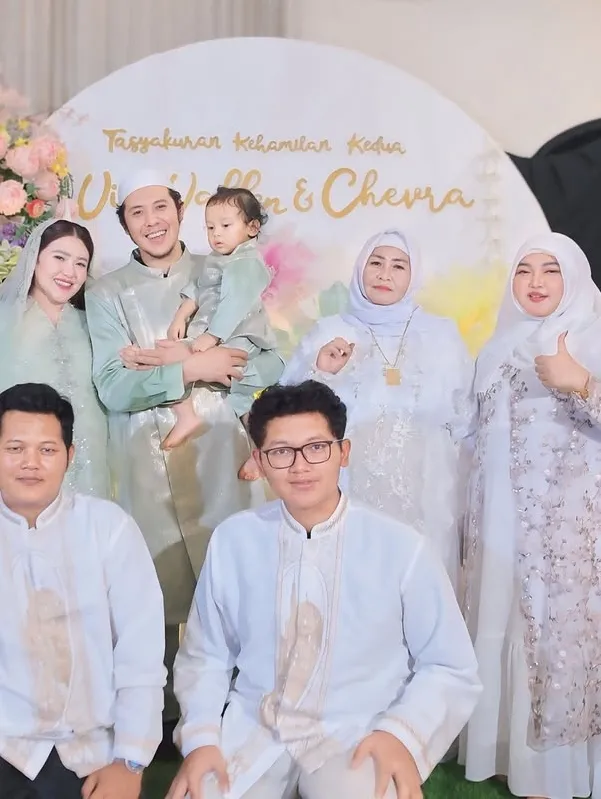 Via sendiri tampil cantik di momen tasyakuran kehamilan keduanya. Warna hijau pastel ia pilih sebagai seragam keluarga di acara penuh bahagia ini.