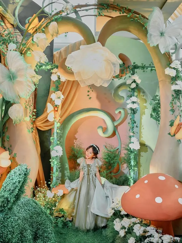 Inilah potret detail dekorasi ulang tahun Claire. Penuh bunga dan warna pastel, bak peri di negeri dongeng!