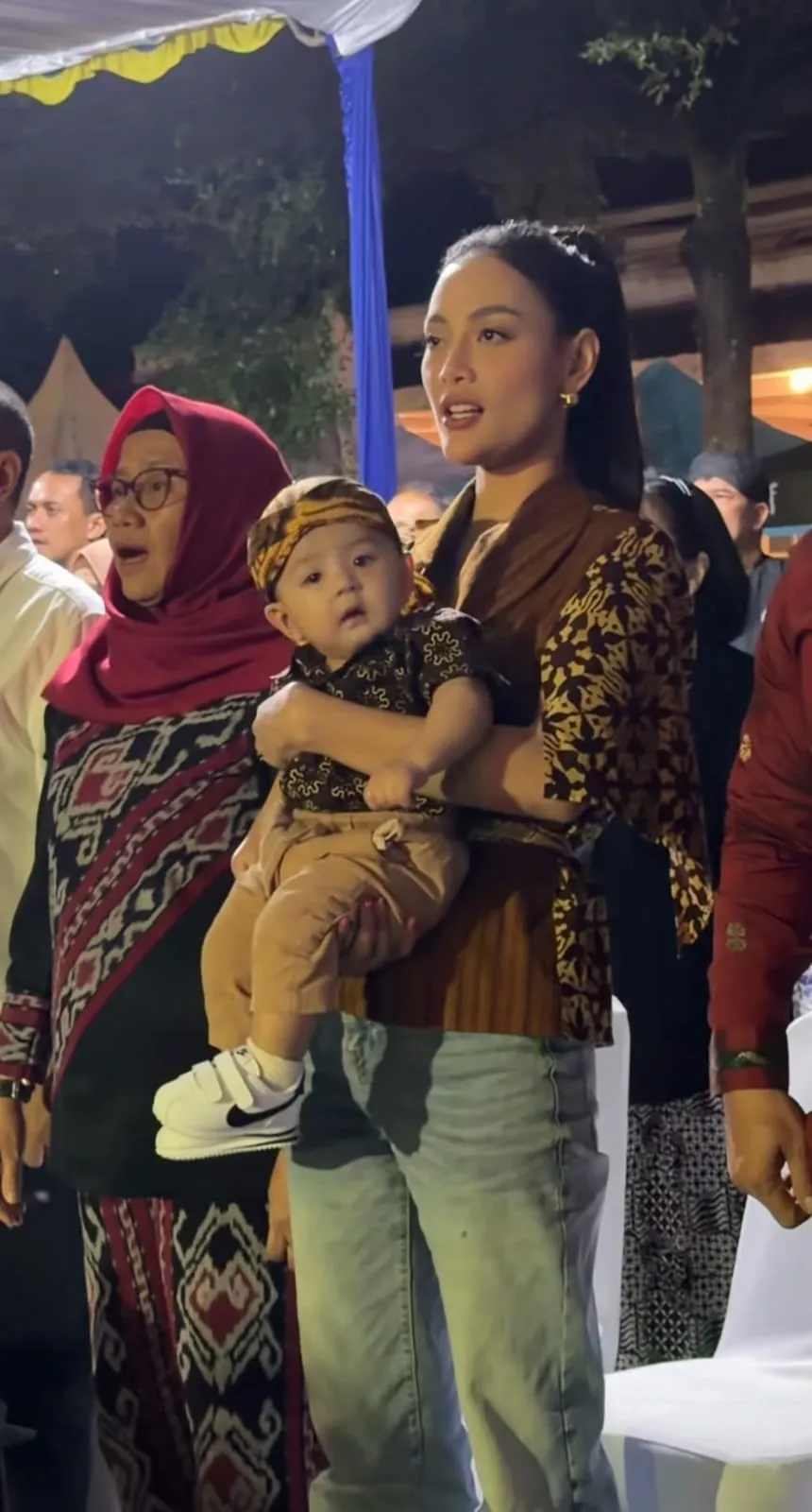 Erika Carlina tampil sangat memukau saat membawa Baby Andrew ke perayaan HUT Banyumas. Menariknya, Baby Andrew tampak selalu anteng dan tenang di gendongan sang ibu selama acara berlangsung.