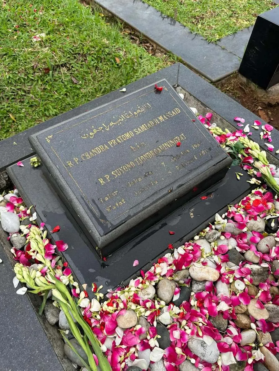 Momen itu ia bagikan melalui unggahan sederhana di media sosial, hanya dengan satu kata penuh makna, "Alfatihah." Tanpa banyak penjelasan, unggahan tersebut justru terasa semakin kuat, seolah menggambarkan doa sunyi yang dipanjatkan dari hati terdalam seorang istri untuk cinta sejatinya yang telah pergi. Begini potret Angie saat ziarah ke makam mendiang suami.