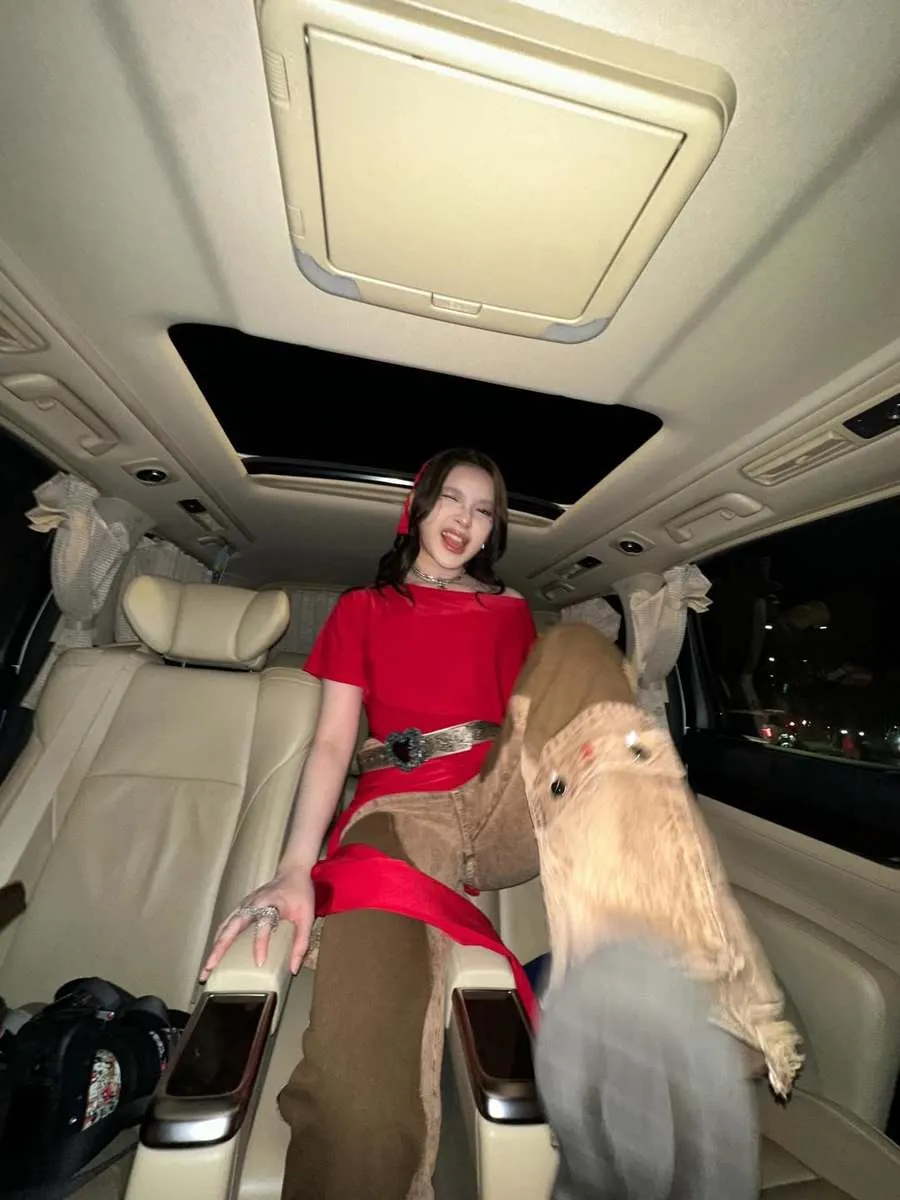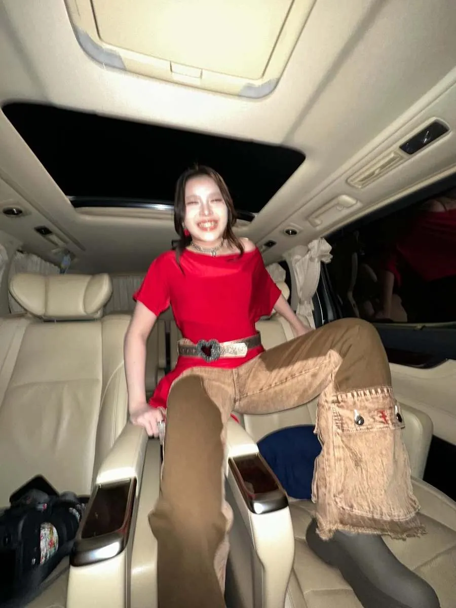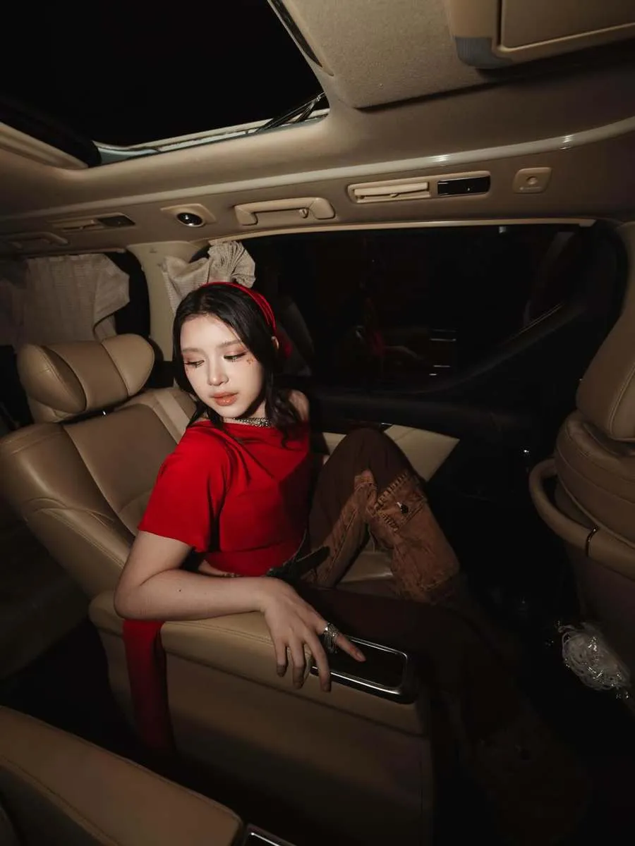 Tiara Andini berangkat manggung dengan menaiki mobil. Menariknya dia enggan duduk cantik di jok mobil.