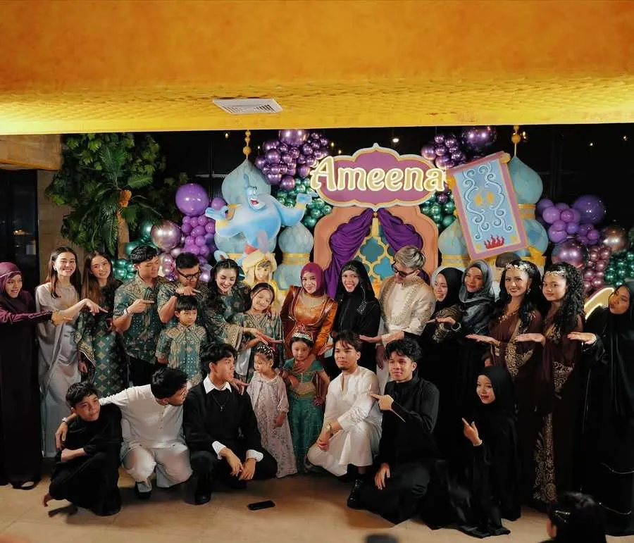 Geni Faruk bersama seluruh anggota Gen Halilintar menunjukkan kekompakan luar biasa demi merayakan hari istimewa Ameena. Kehadiran mereka yang lengkap menciptakan atmosfer pesta yang penuh keceriaan.