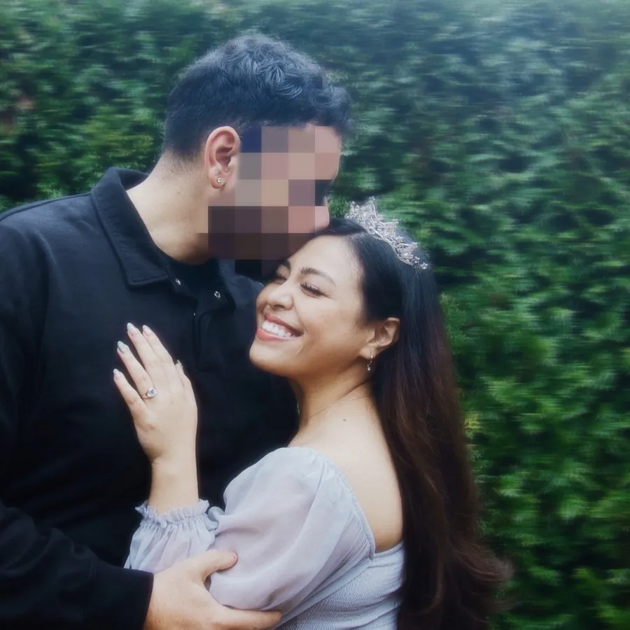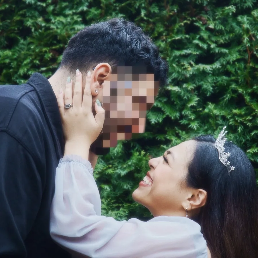 Dengan senyum bahagia, Kamasean menunjukkan bahwa ia dan kekasihnya sudah bertunangan. Namun Sean masih merahasiakan wajah sang kekasih yang ia edit sedemikian rupa agar parasnya tidak terlihat.