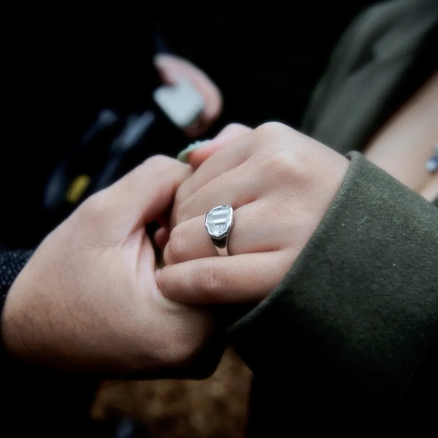 Cincin pertunangan yang diterima Kamasean dari sang pacar pun cukup unik. Bukan berlian berukuran raksasa, namun cincin ini terlihat dibuat khusus dan sesuai dengan selera Sean pada perhiasan.