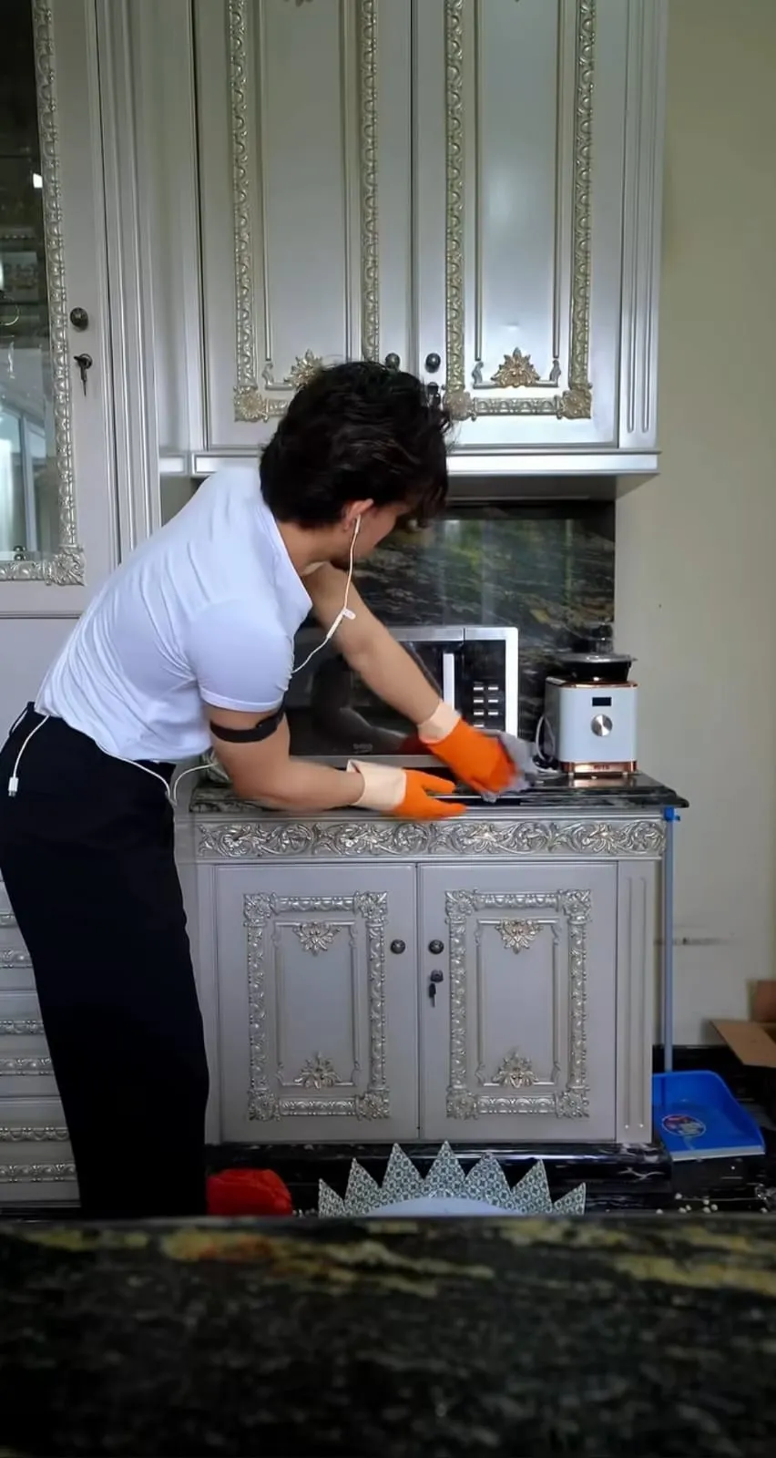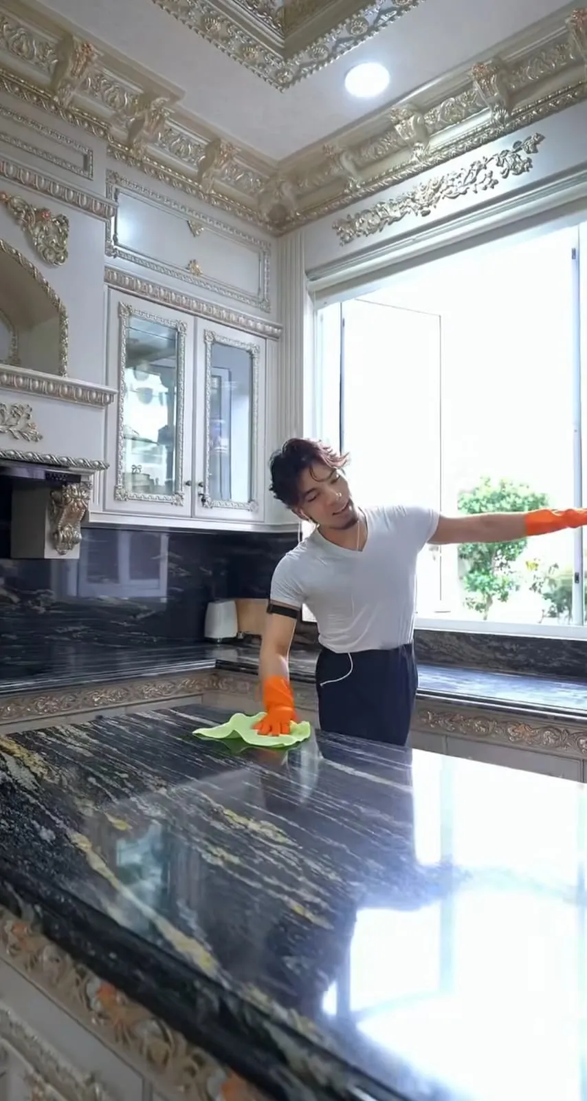 Dapur Saaih Halilintar kini terlihat sangat rapi dan berkilau setelah selesai dibersihkan. Lantai marmer dan interior bergaya Eropa klasiknya kembali memancarkan kemewahan yang sempurna. Ruangan ini pun tampak sangat nyaman.