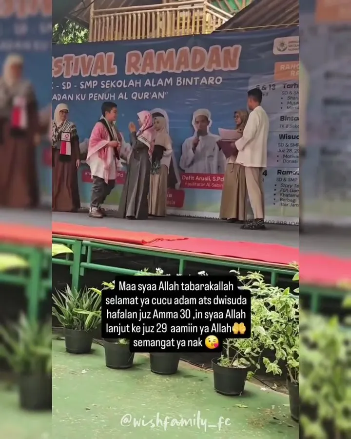 Acara bertajuk Festival Ramadan digelar meriah di sekolah. Adam naik ke panggung untuk wisuda hafalan Juz 30 dengan penuh percaya diri.