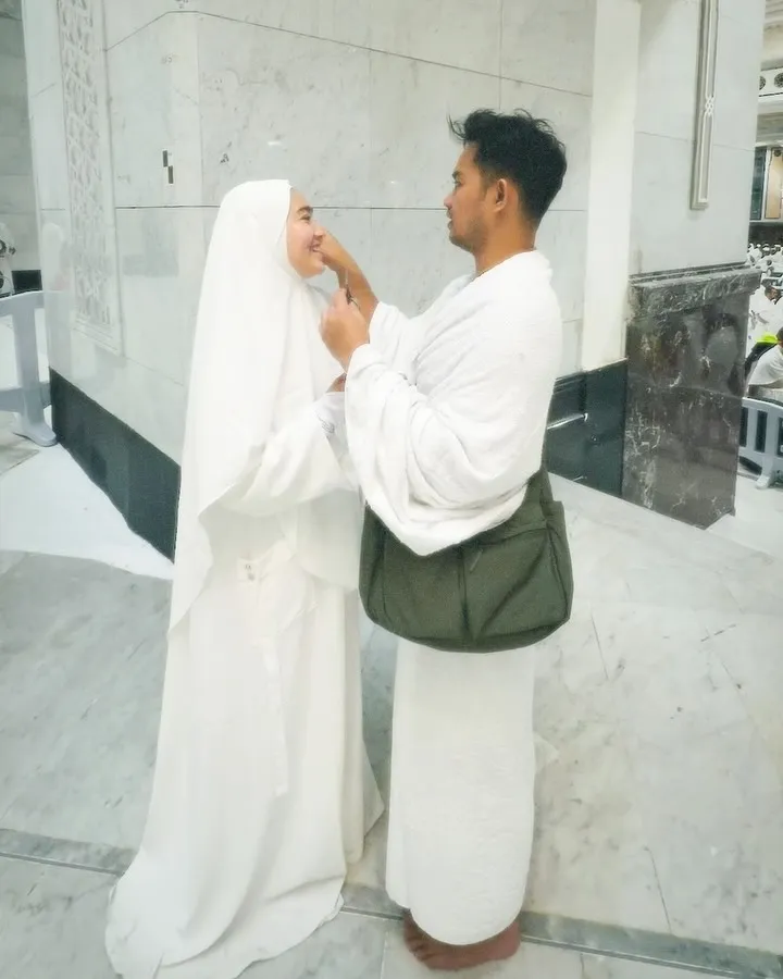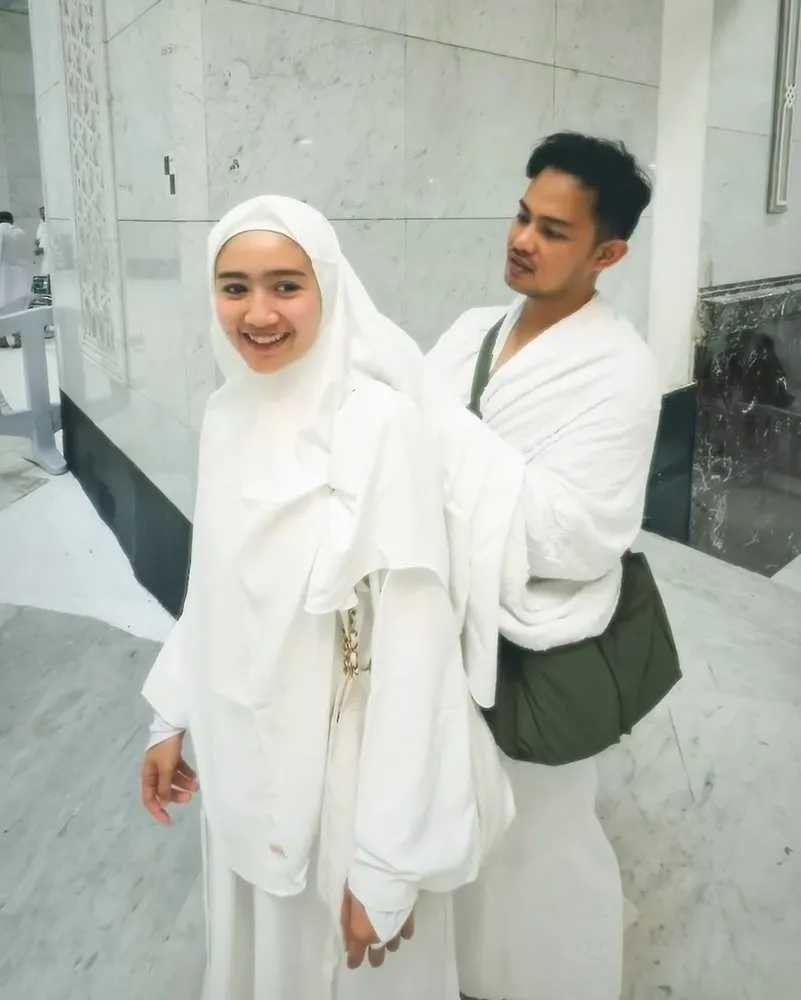 Dalam unggahannya, Febby mengaku momen tersebut terasa seperti mimpi yang akhirnya menjadi kenyataan. Mengenakan baju ihram putih, keduanya terlihat romantis sekaligus penuh syukur di depan Ka'bah.