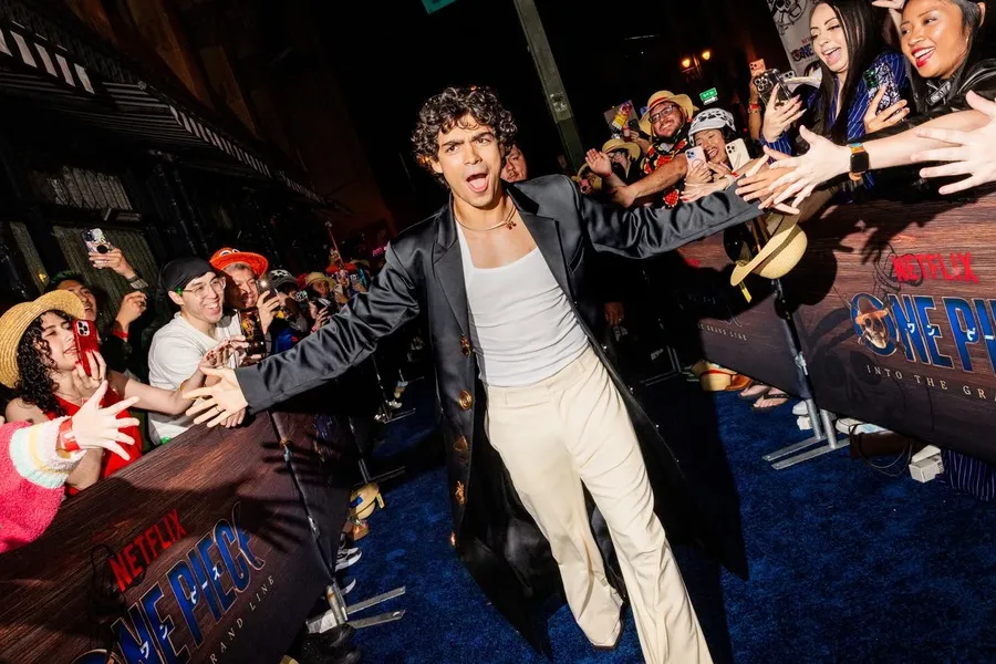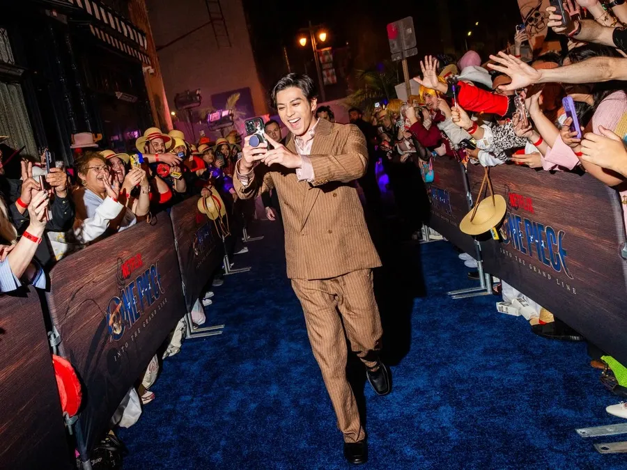 Jacob Romero Gibson, pemeran Usopp, terlihat penuh semangat saat menyapa para penggemar di red carpet. Ia juga beberapa kali melambaikan tangan kepada fans yang bersorak.