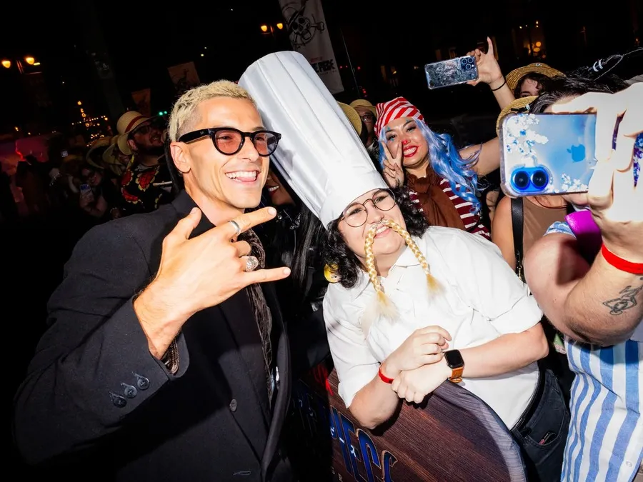 Taz Skylar, pemeran Sanji, tampil stylish saat hadir di acara tersebut. Ia juga sempat berhenti untuk berfoto bersama para penggemar.
