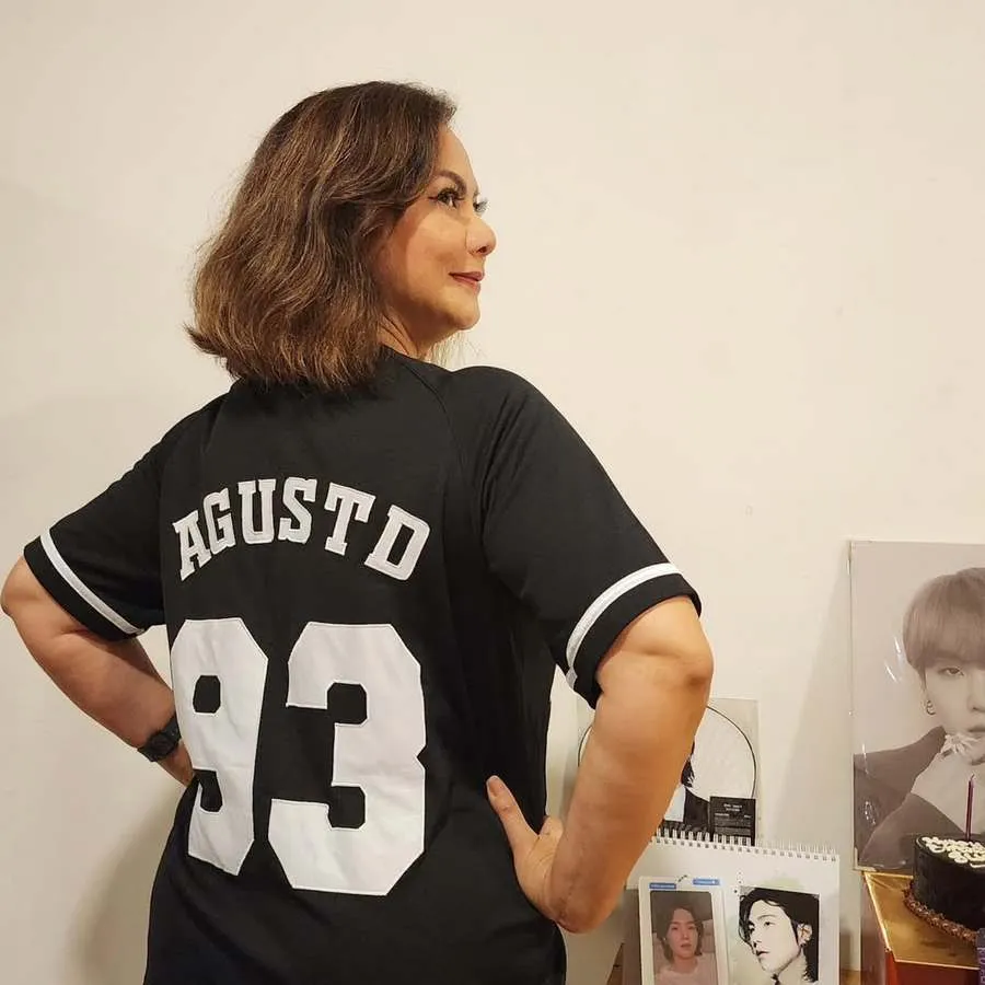 Selain dekorasi yang niat, pilihan outfit Memes dalam acara ini juga tak kalah menarik untuk disorot. Memes tampil penuh percaya diri mengenakan jersey hitam bertuliskan nama punggung Suga BTS.