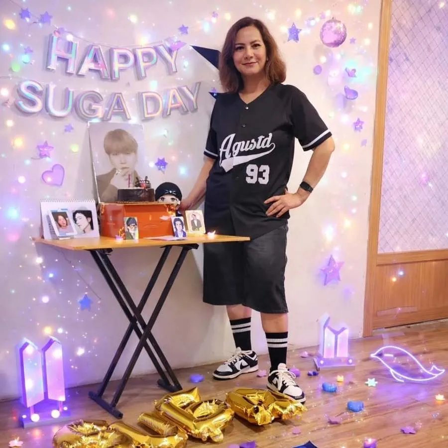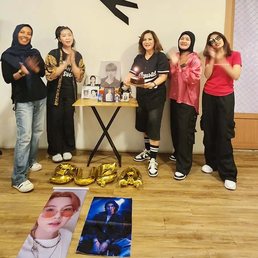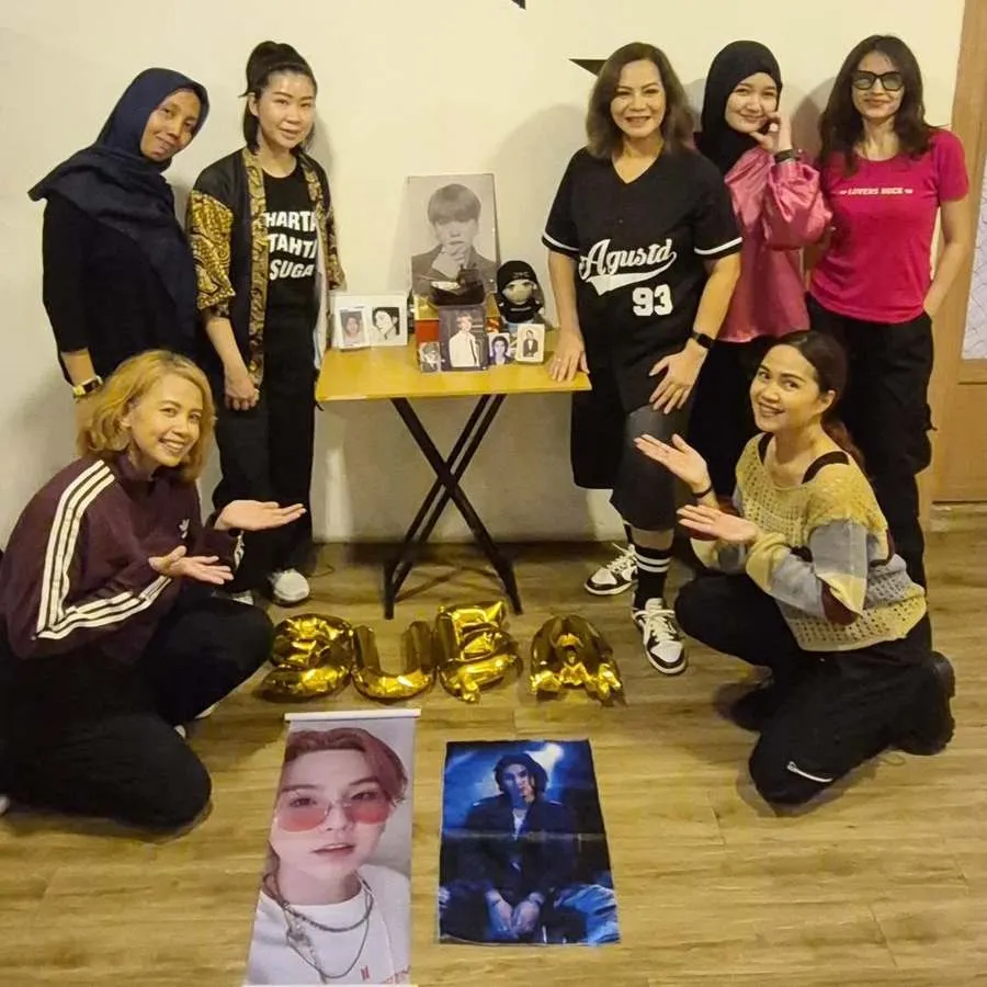 Memes tampil sangat kompak saat merayakan hari spesial Suga bersama teman-teman ARMY lainnya. Mereka semua terlihat sangat ceria dengan mengenakan busana bertema idola favorit yang senada.
