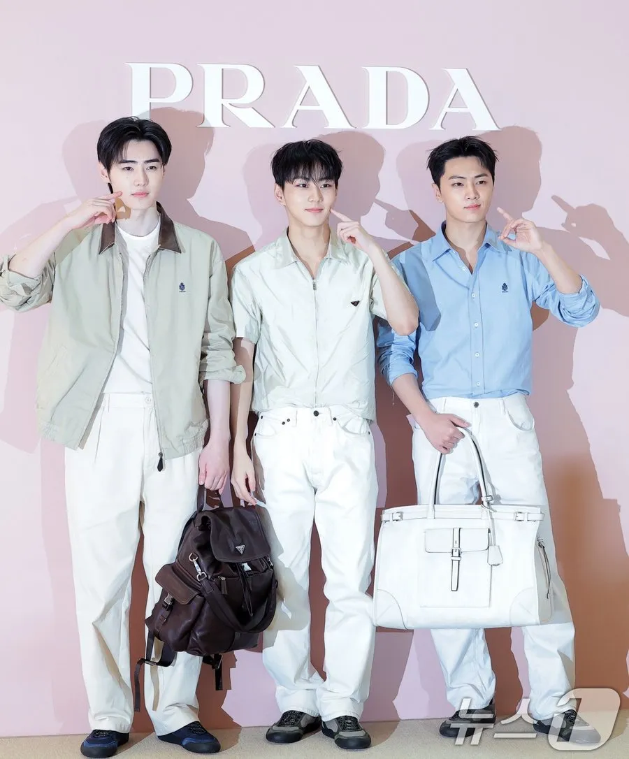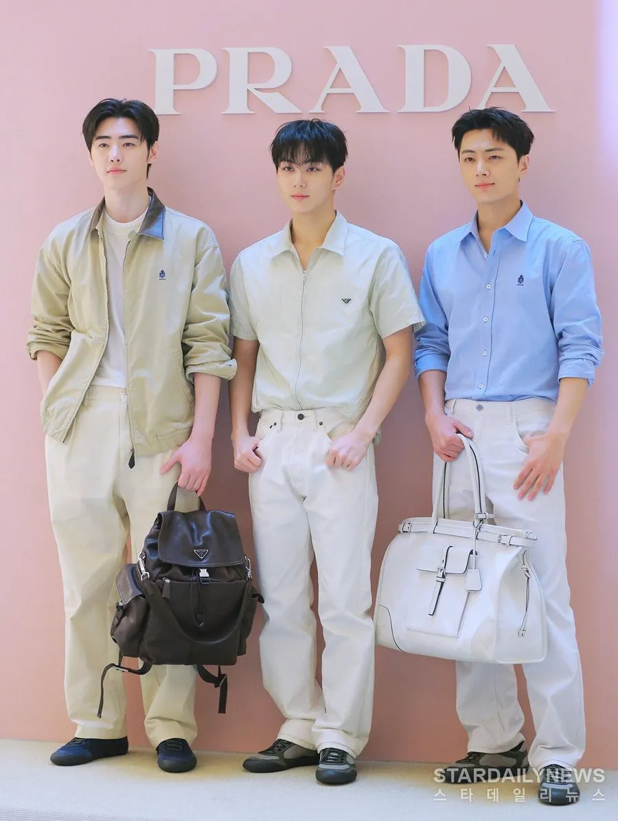 Sunghoon, Jungwon dan Jay langsung jadi perhatian banyak penggemar ketika mereka datang ke venue tempat Prada menggelar acara mereka. Sudah pasti ketiganya tampil memakai serba Prada.