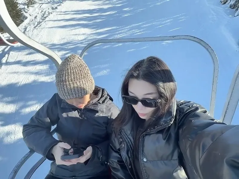 Outfit musim dingin bernuansa netral membuatnya tampak fashionable. Ia juga membagikan pengalaman bermain ski di hamparan salju putih.