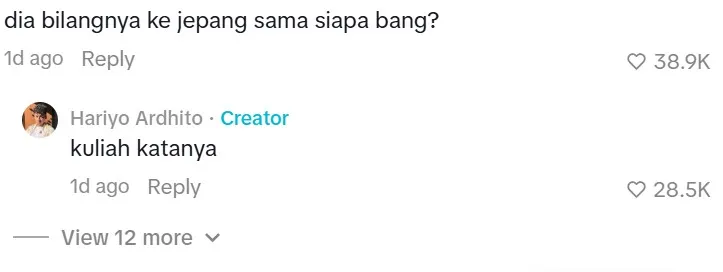 Lewat kolom komentar, Hariyo bilang ketika ke Jepang, Cindy berkata dia ke sana untuk kuliah. Padahal kini diketahui, ia ke sana dengan suami Maissy.