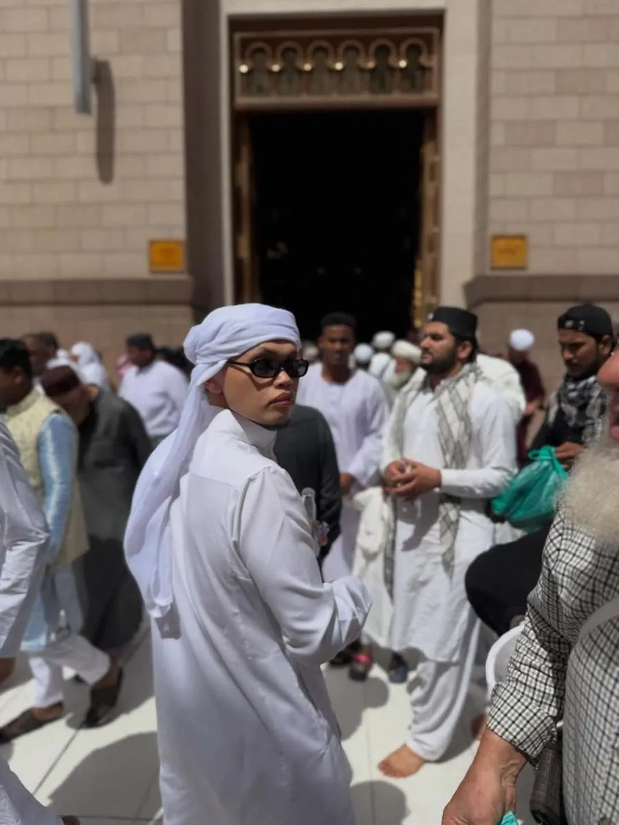 Selama di sana, Wanda tampil gagah kenakan sorban. Sepasang kacamata hitam tak lupa dipakai di tengah panasnya terik matahari.