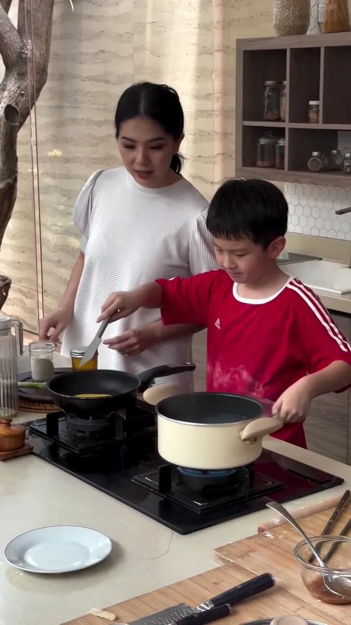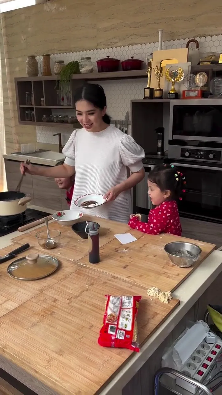 Momen hangat terlihat dari dapur milik Devina Hermawan yang kerap membagikan aktivitas memasak di rumah. Dalam beberapa potret terbaru, chef jebolan MasterChef Indonesia musim kelima itu tampak ditemani anak-anaknya saat menyiapkan hidangan.