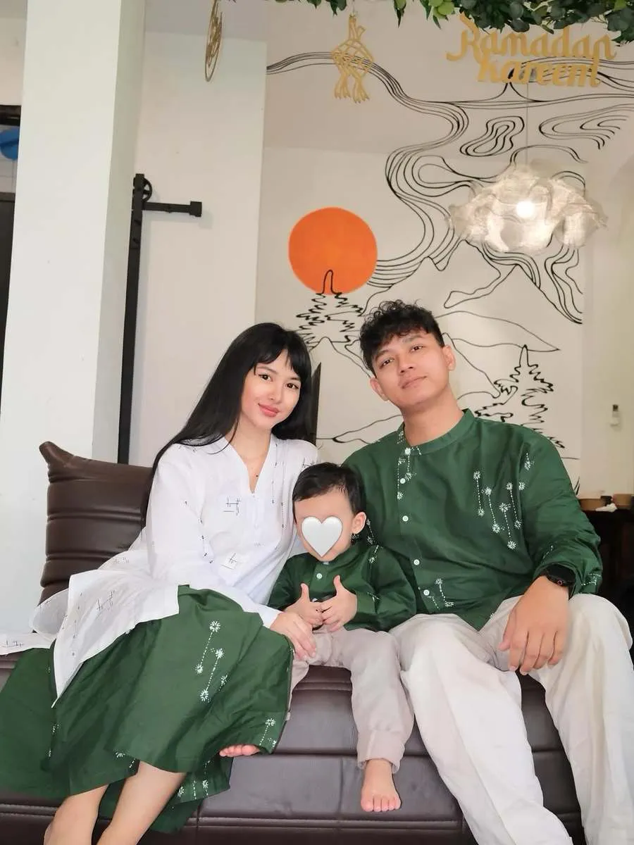 Inilah salah satu potret kebersamaan Adinda Azani dan suami Armand Zachary, bareng sang anak Arthura Zachni Kala Sukandar di momen Lebaran lalu. Sosok Arthura mencuri perhatian meski wajahnya masih ditutup stiker.