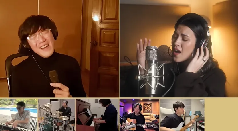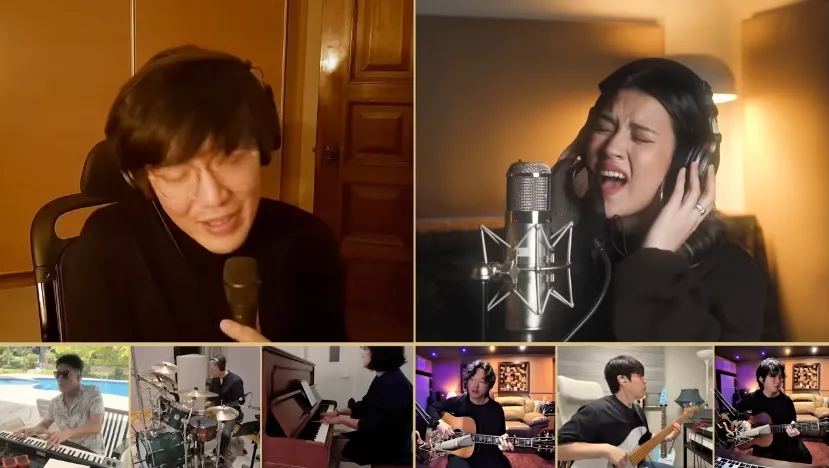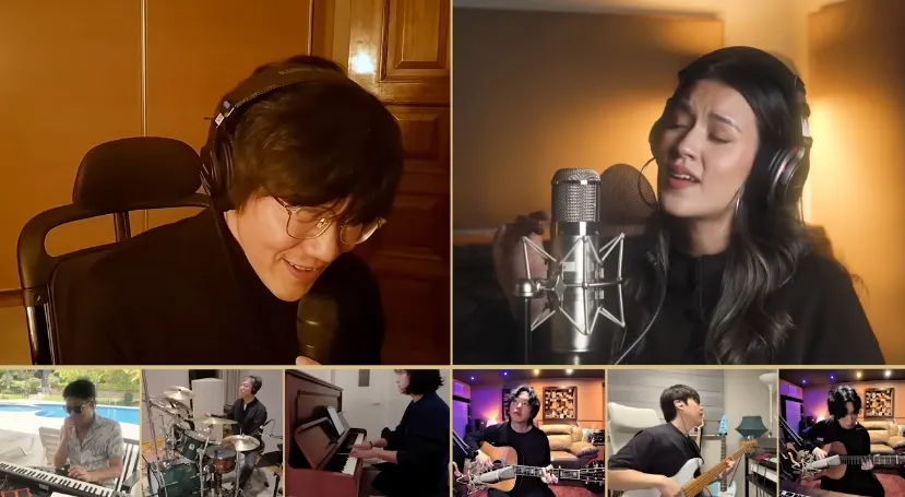 Sementara itu, suara vokal mereka diiringi para pemain piano, gitar, bass, dan drum dari lokasi berbeda. Konsep ini memberi nuansa live session lengkap.