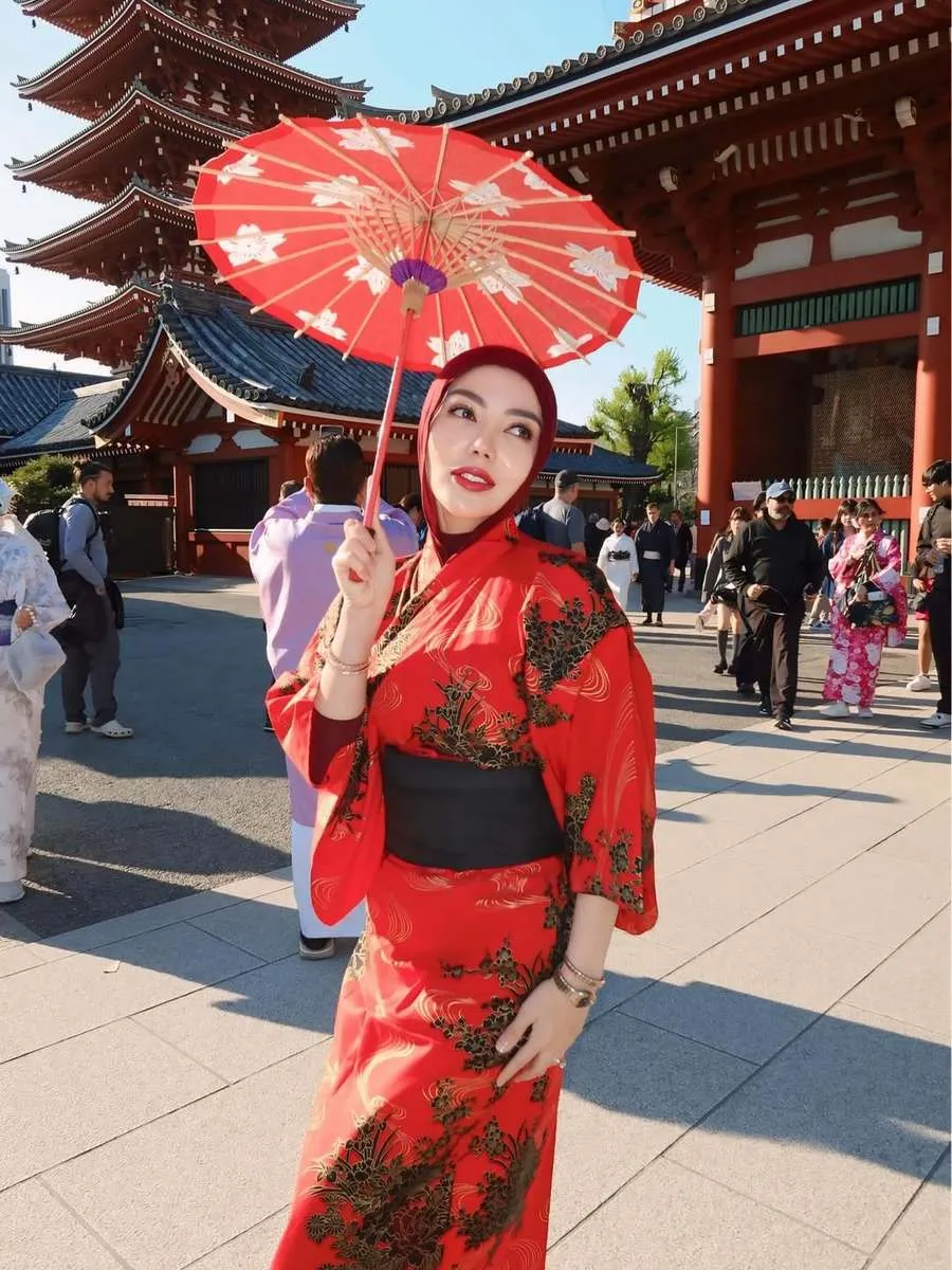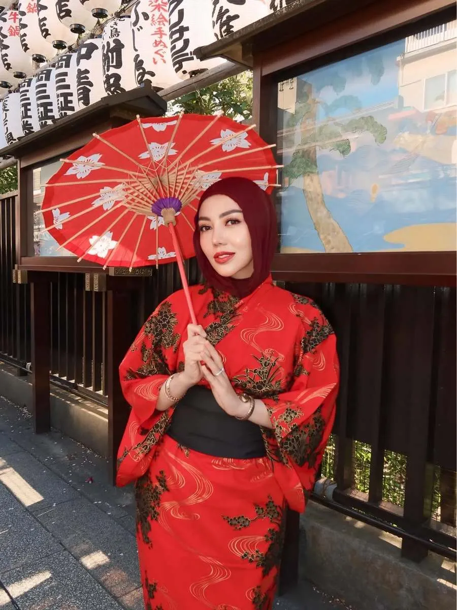 Bella Shofie belum lama ini terpantau terbang ke Jepang bersama keluarganya. Selama di sana, ia sempat tampil kenakan kimono. Ia memilih kimono warna merah yang mencuri perhatian. Seperti apa penampilannya? Intip yuk!
