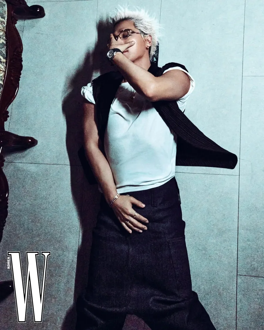 Taeyang menampilkan koleksi jam tangan dan perhiasan dari Piaget untuk pemotretannya bareng W Korea. Setiap look terasa mewah tapi tetap edgy, memperkuat image-nya sebagai global icon.
