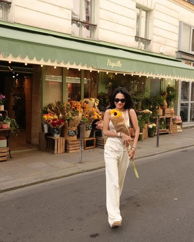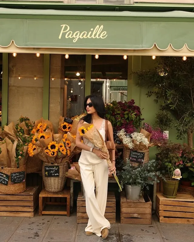 Di Paris, Zize jatuh cinta dengan bunga matahari yang cantik. Ia berpose dengan bunga-bunga itu dan hasilnya diunggah di Instagram pribadinya.