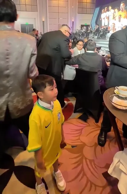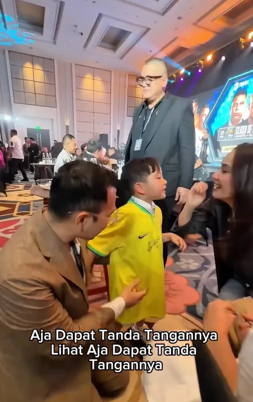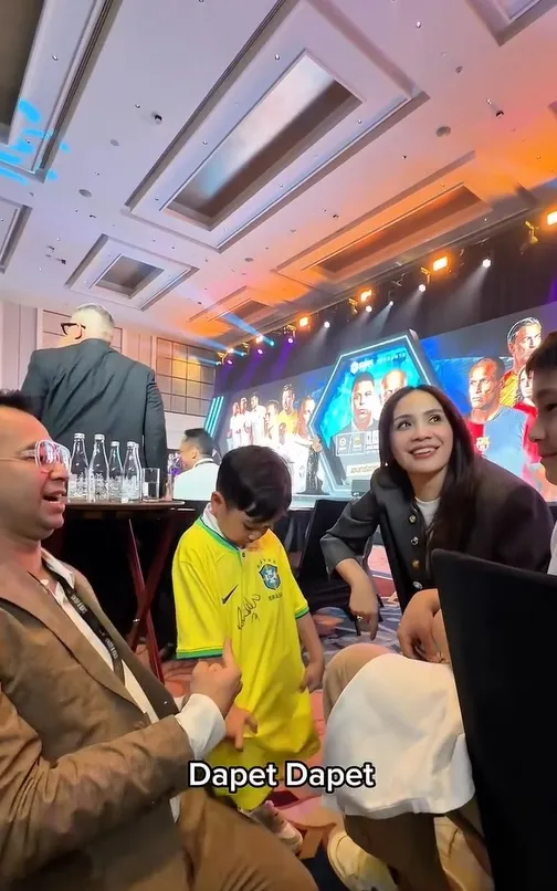 Malam itu Nagita Slavina dan Rafathar juga turut serta dalam pertemuan bersama para legenda sepakbola. Ternyata, jersey timnas Brazil yang dipakai oleh Rayyanza adalah milik sang kakak, Rafathar.